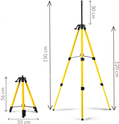 De brede verstelmogelijkheid van de poten maakt nivelleren op oneffen ondergrond mogelijk, zodat je ook in veeleisende omstandigheden op bouwplaats of bij renovatie precieze resultaten behaalt. Het statief is compatibel met veel modellen laser-nivelleerinstrumenten dankzij de 5/8''-schroefdraad en is daarmee een universele accessoire voor professionals en doe-het-zelvers.