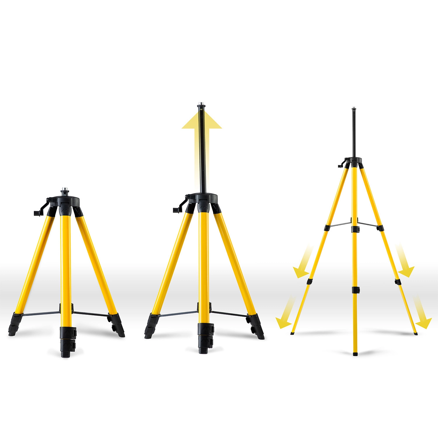 Drie uitschuifbare poten met stevige vergrendelingen en spreiders zorgen voor uitstekende stabiliteit op verschillende ondergronden – geschikt voor interieur en exterieur.