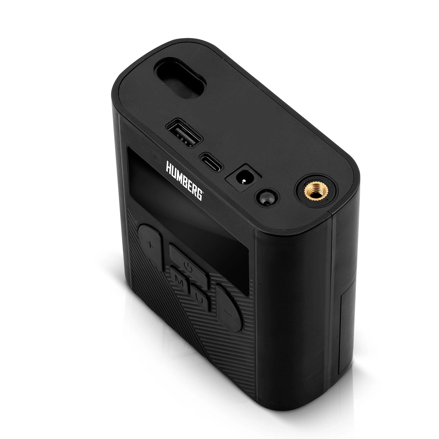 De compacte en krachtige draadloze HUMBERG-compressor zorgt voor snel bijpompen van banden, altijd en overal. Hij biedt automatisch uitschakelen bij het bereiken van de doeldruk, 4 vooringestelde modi + eigen, een overzichtelijk LED-display en keuze van eenheden (bar/psi/kPa/kg/cm²). Dankzij de 6000 mAh accu, powerbank-functie en geïntegreerde zaklamp met SOS is hij ideaal voor auto, motor, fiets, ballen en opblaasaccessoires.