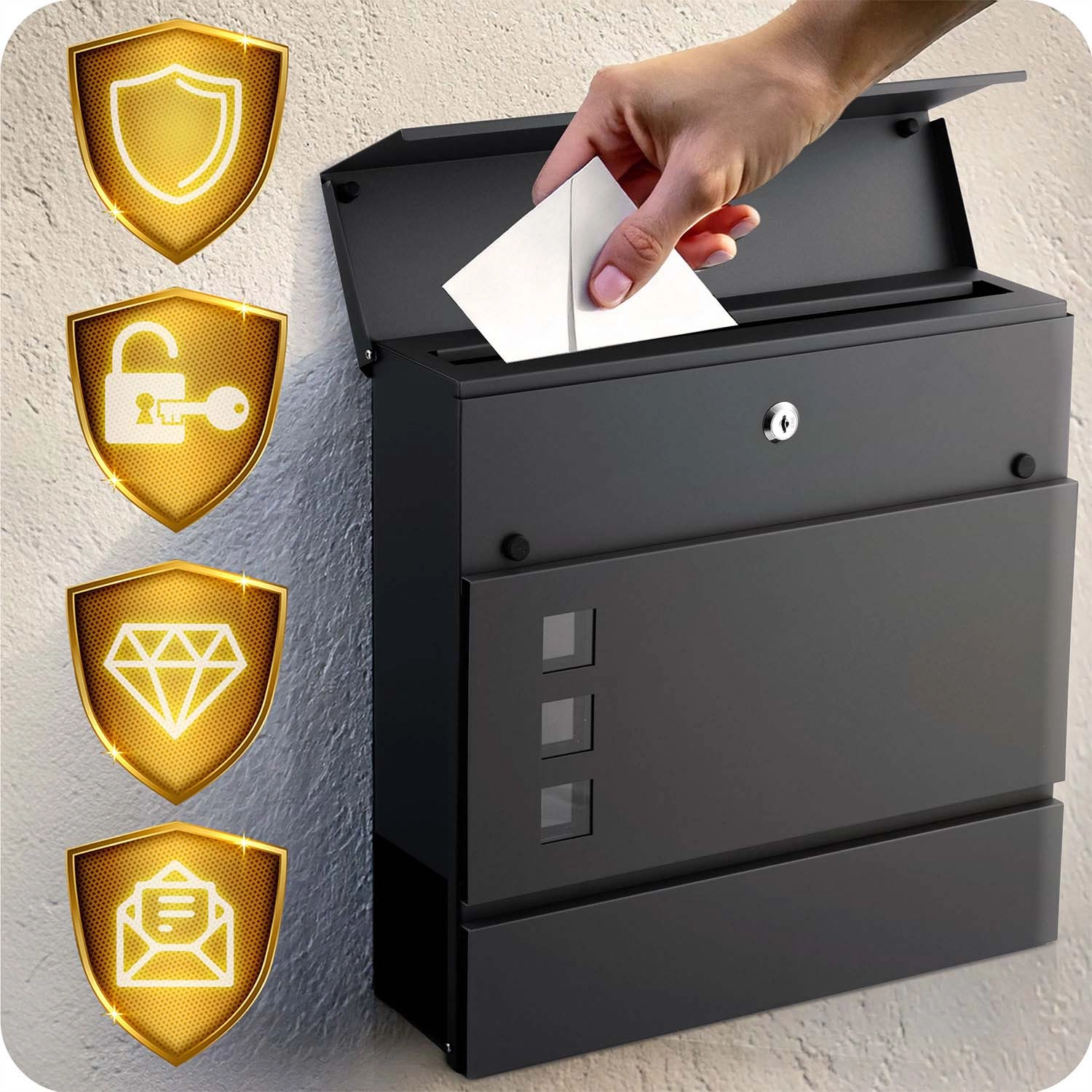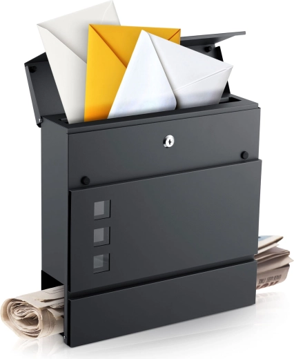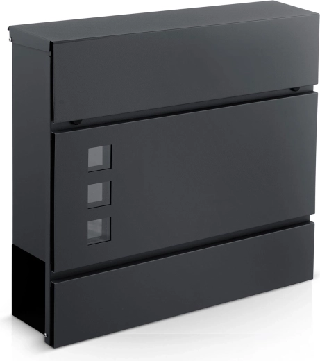 Stijlvolle en functionele brievenbus in antraciet die perfect past bij moderne gevels en hekken. Duurzaam verzinkt staal met poedercoating beschermt tegen corrosie, regen en UV-straling, waardoor het uiterlijk en de functionaliteit langdurig behouden blijven. De praktische boveninworp met gedempte sluiting voorkomt dichtslaan en beschermt de post tegen vocht en nieuwsgierige blikken.