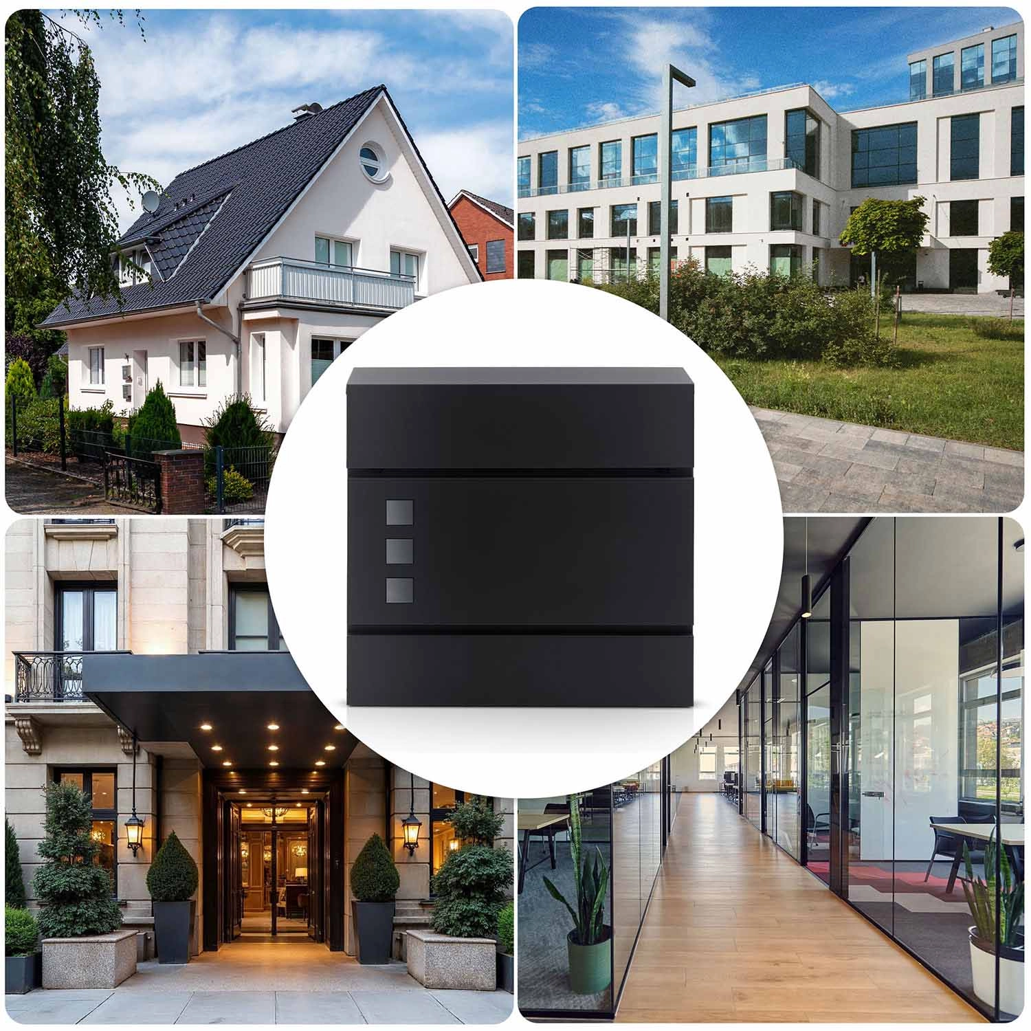 De behuizing van verzinkt staal met poedercoating is bestand tegen corrosie, regen en UV-straling. De brievenbus behoudt jarenlang zijn uiterlijk en functionaliteit.