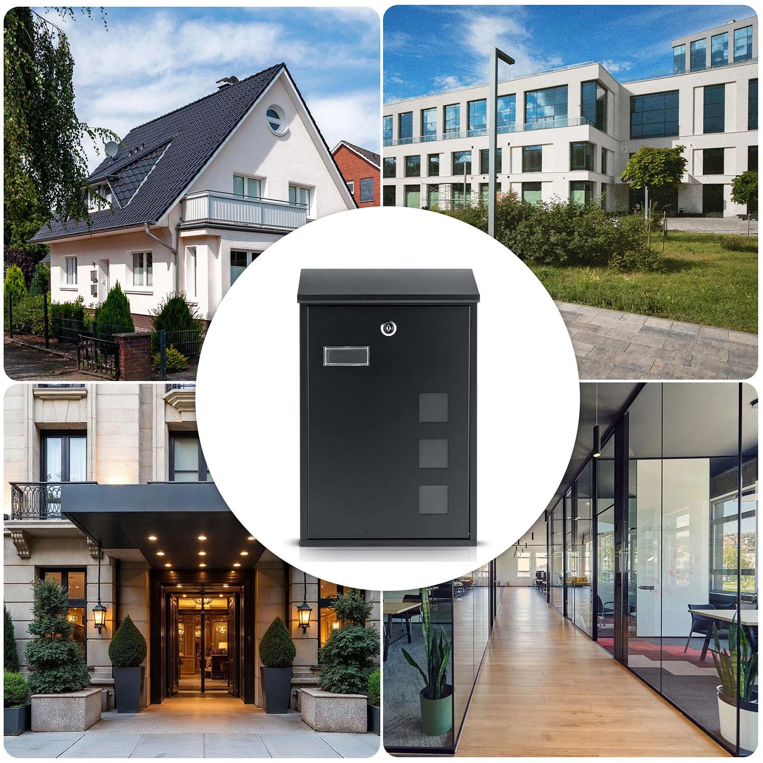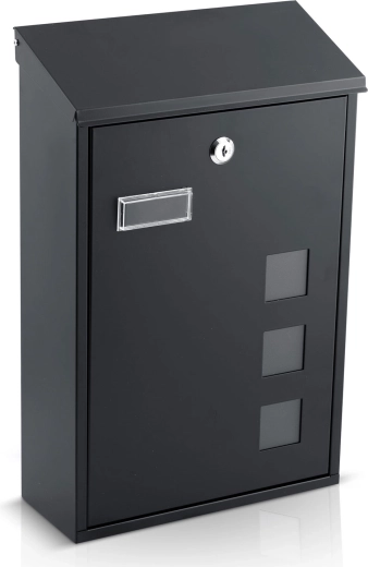 De moderne wandbrievenbus is gemaakt van duurzaam gegalvaniseerd staal en afgewerkt met een elegante zwarte poedercoating. Hierdoor is hij uitstekend bestand tegen corrosie, vocht en UV-straling, en past hij perfect bij een moderne gevel of hekwerk. De doordachte constructie beschermt brieven tegen regen en sneeuw, terwijl de kijkvensters snel een blik op de inhoud mogelijk maken zonder te openen.