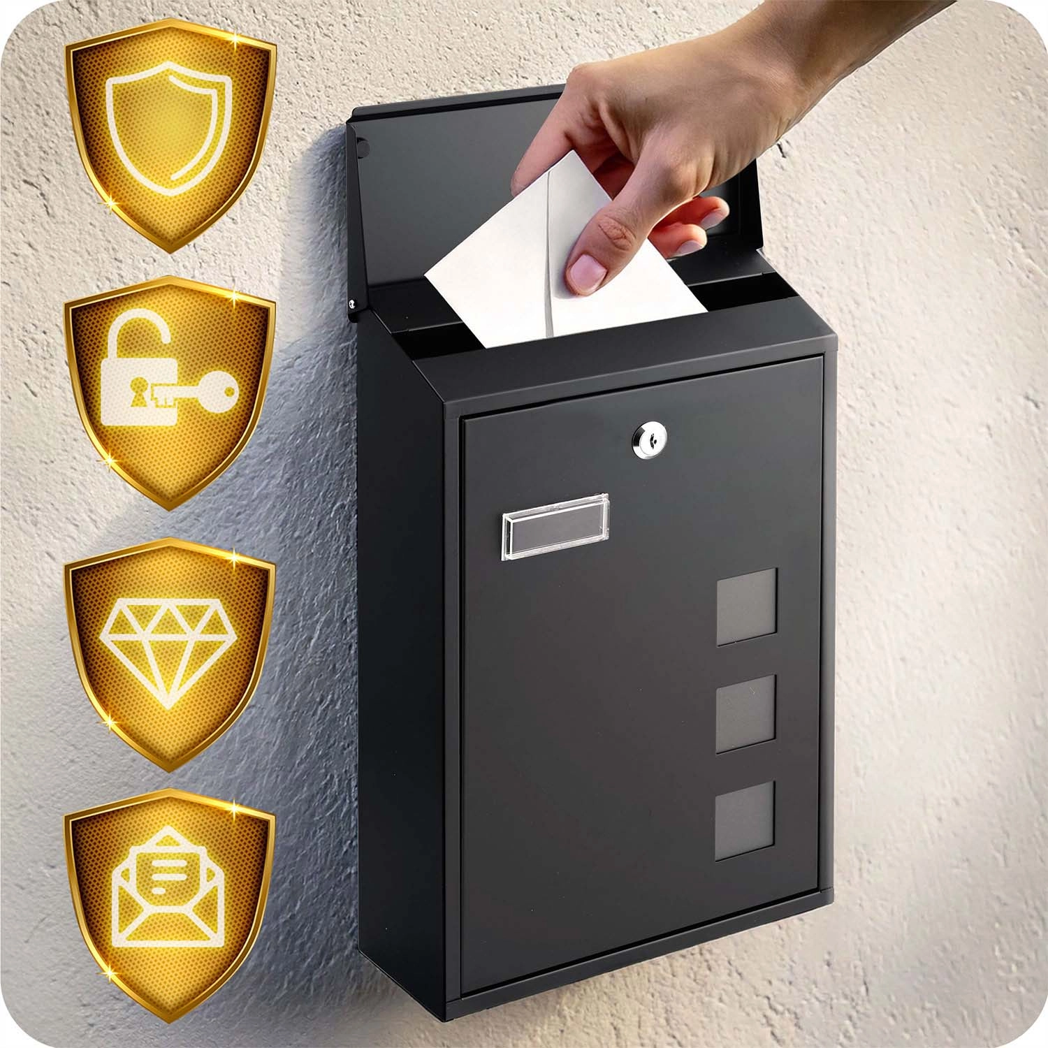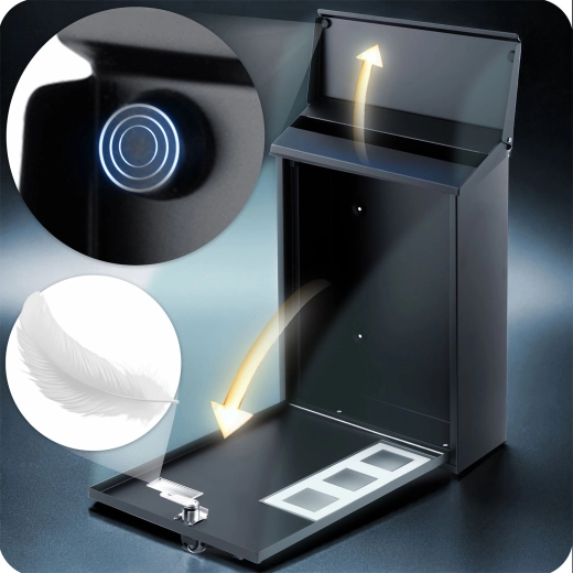 De constructie van gegalvaniseerd staal en de hoogwaardige zwarte poedercoating beschermen de brievenbus tegen corrosie, UV-straling en vocht – ideaal voor het hele jaar door buitengebruik.