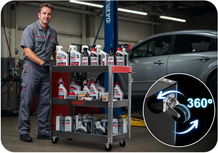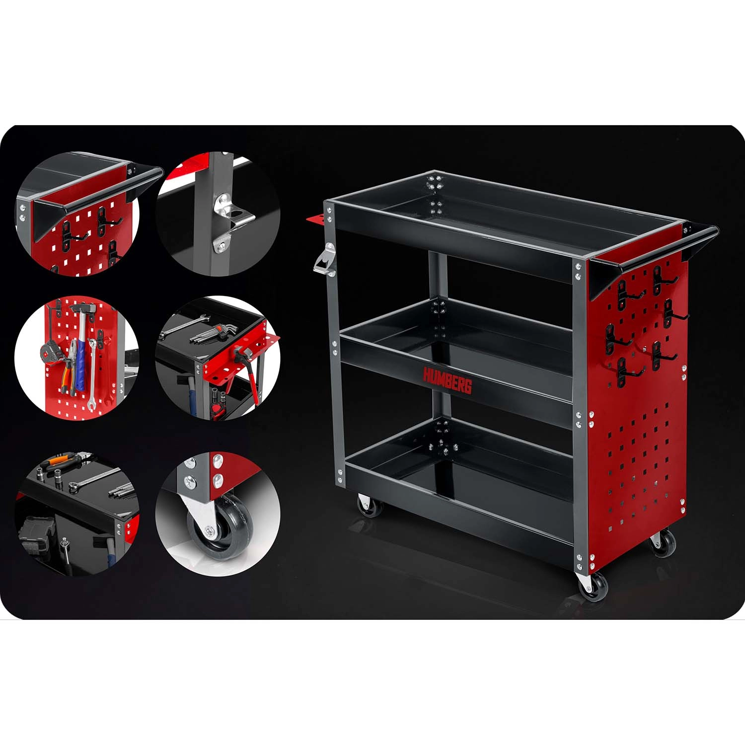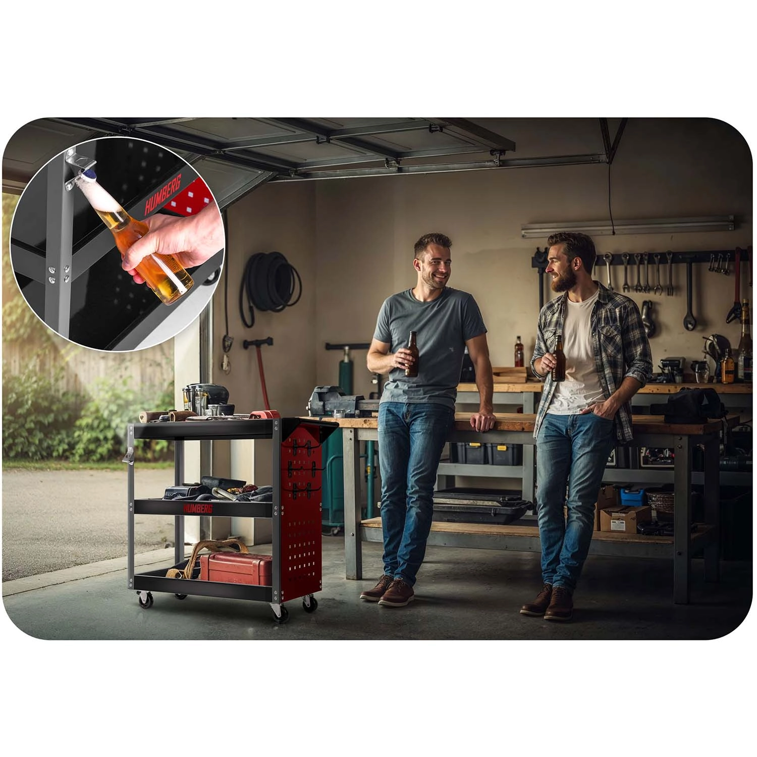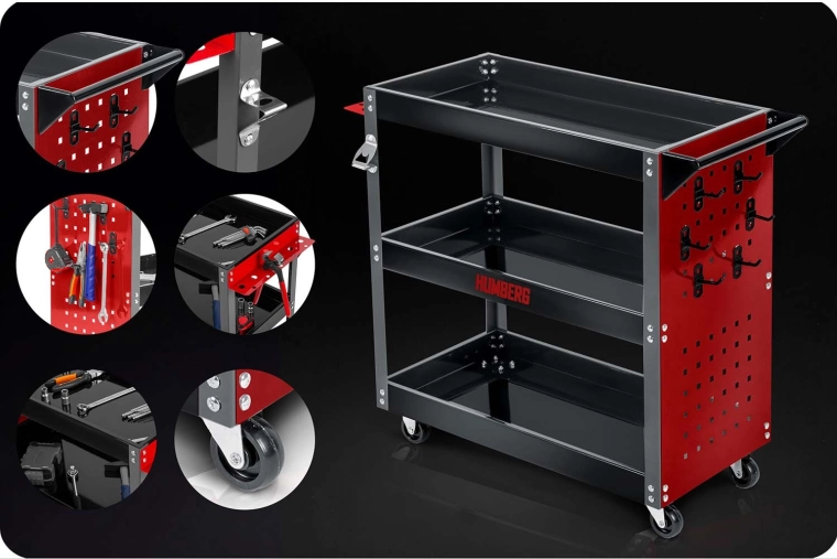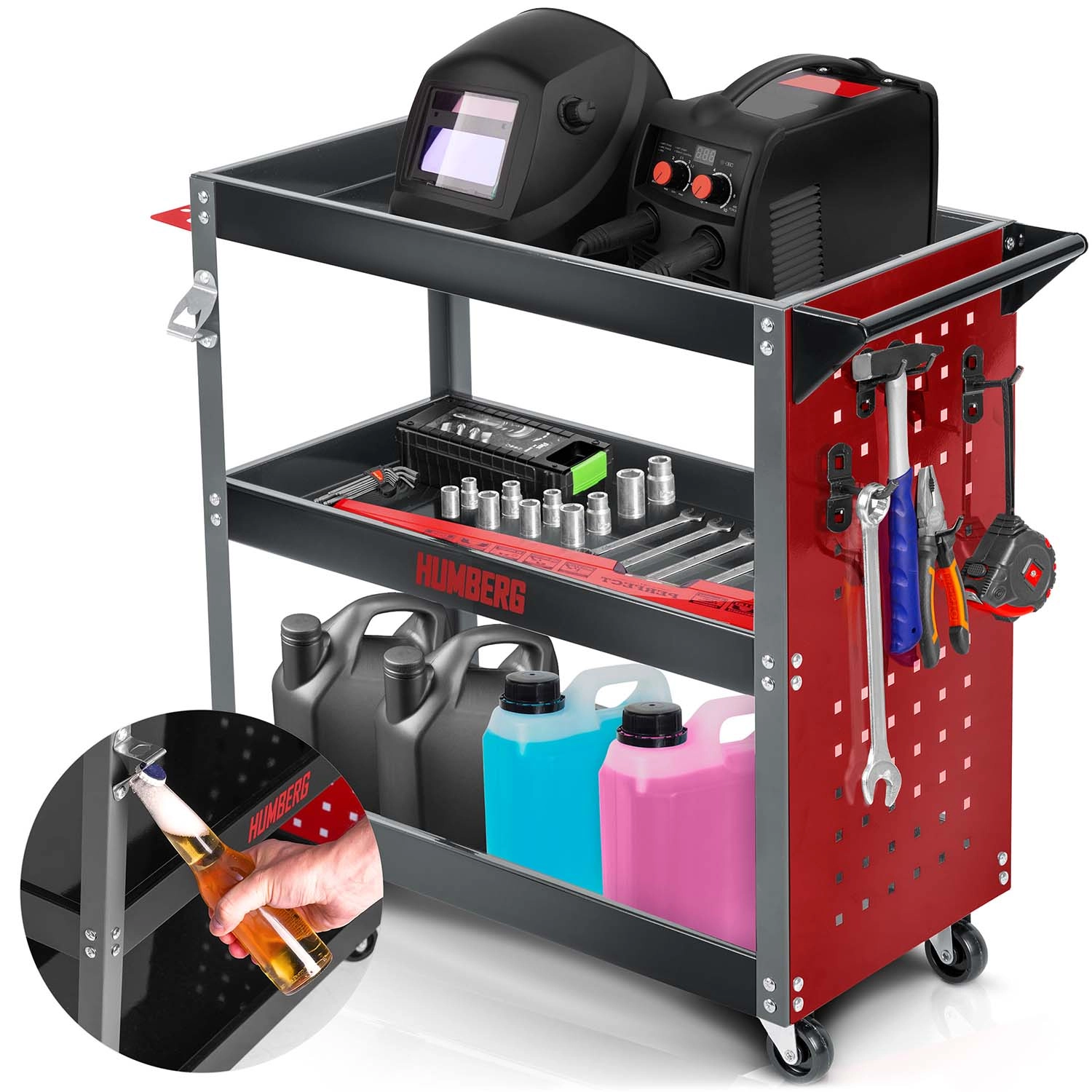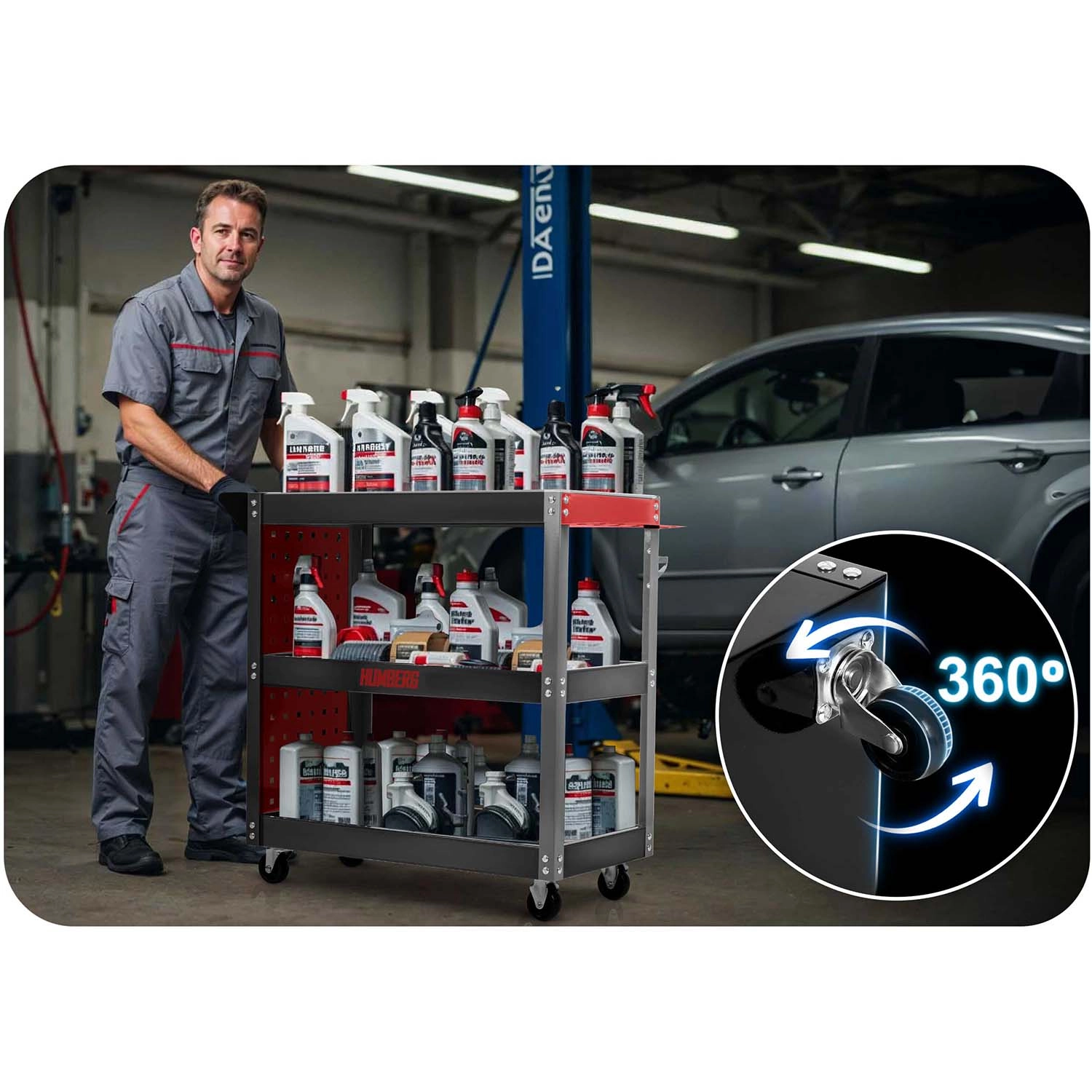 De HUMBERG wagen is ontworpen voor veeleisende werkplaatsomgevingen. Hij combineert roestvrij staal en aluminium voor hoge duurzaamheid en een lange levensduur. Drie diepe leggers bieden voldoende ruimte voor gereedschap, onderdelen en accessoires, terwijl geperforeerde zijpanelen met haken vaak gebruikte tools altijd binnen handbereik houden.