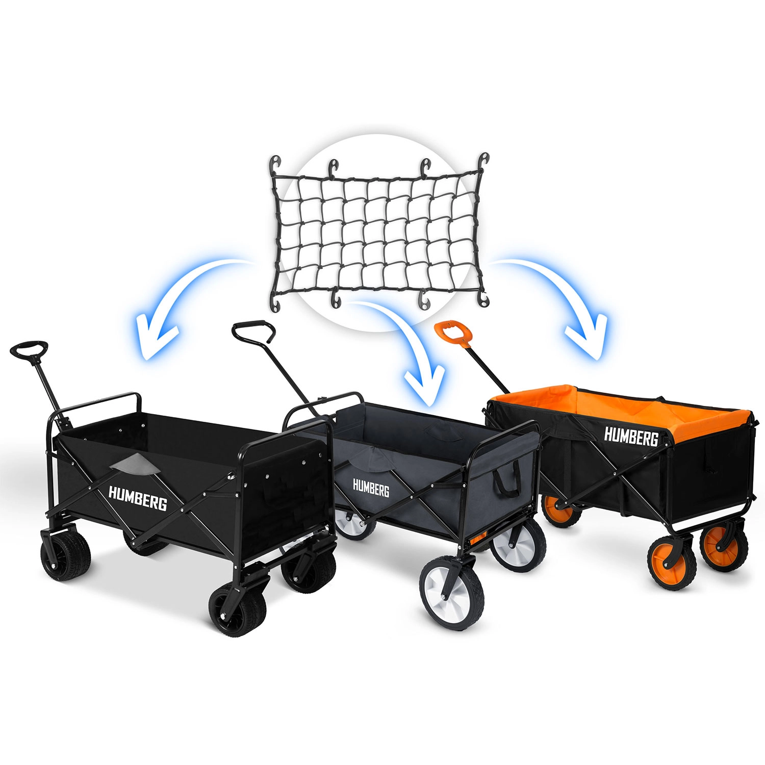 Dankzij de universele afmetingen is het compatibel met meerdere HUMBERG-modellen en met karren van vergelijkbare grootte. Ideaal voor stranduitrusting, sportbenodigdheden, picknicksets en tuingereedschap – alles blijft veilig op zijn plek.