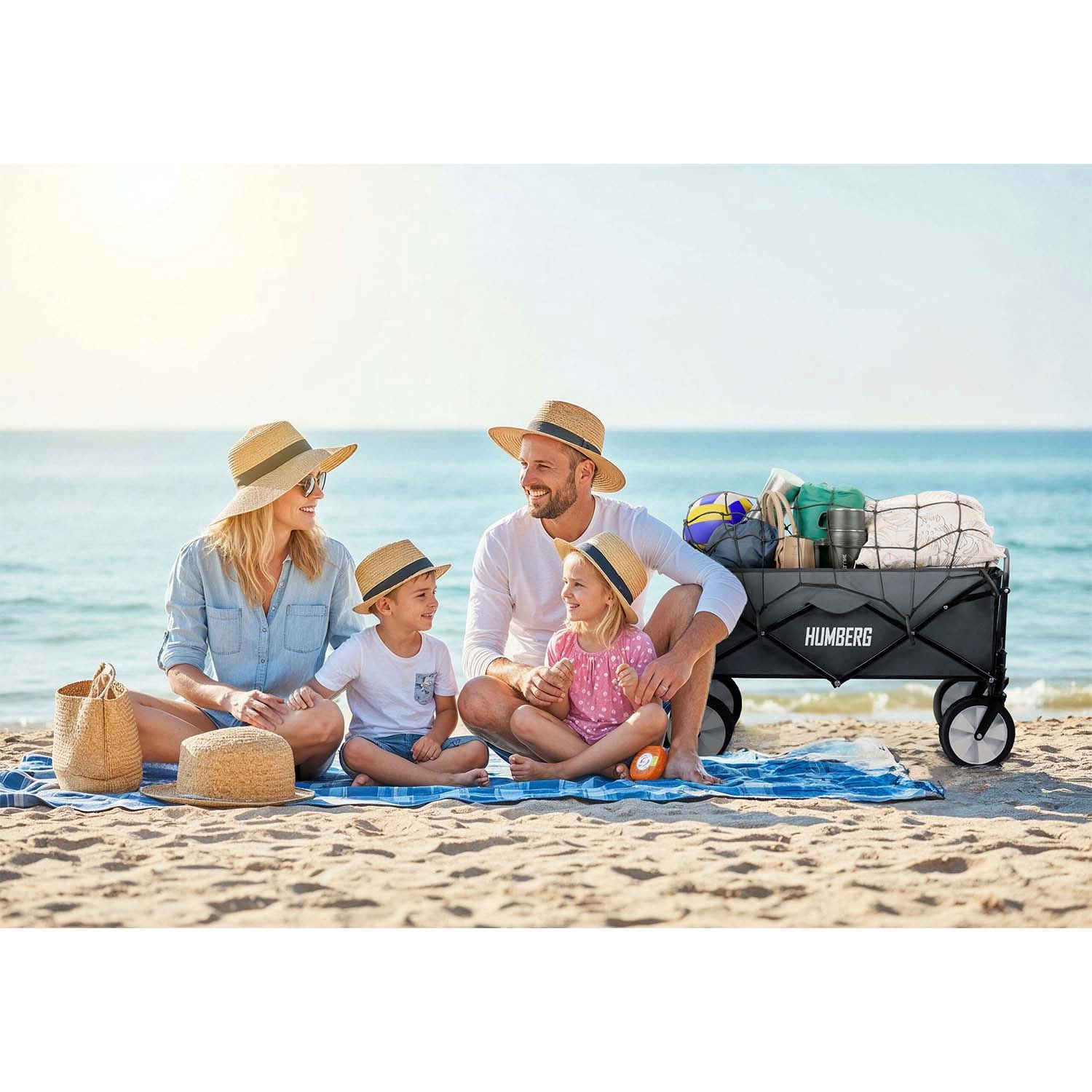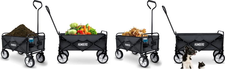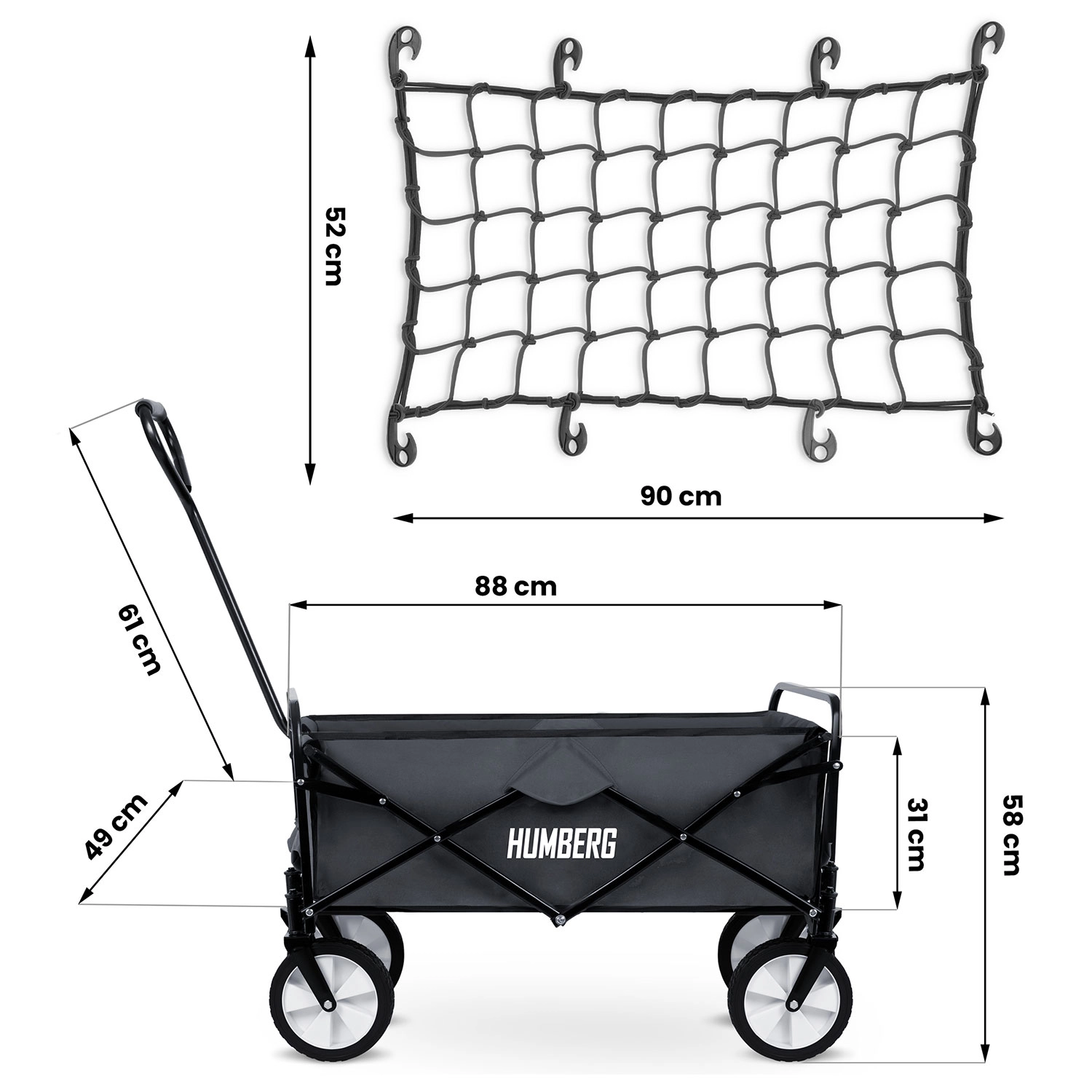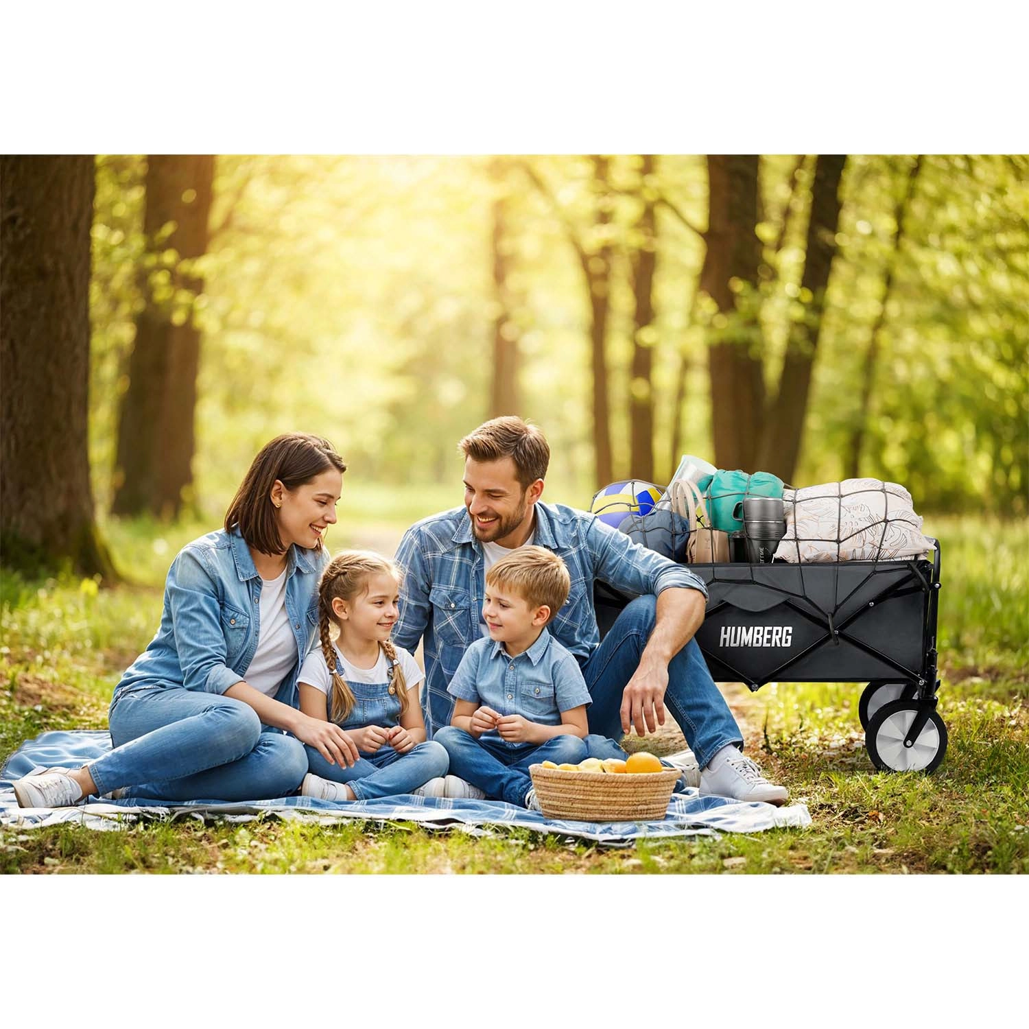 Zoek je een duurzame en toch compacte wagen voor tuin, strand of uitstapjes? De opvouwbare HUMBERG-wagen biedt een ruime bak van 80 l, een poedergecoat stalen frame en draaibare voorwielen voor precieze besturing. Dankzij het lage gewicht en de compacte afmetingen na het opvouwen berg je hem eenvoudig op in auto of garage.