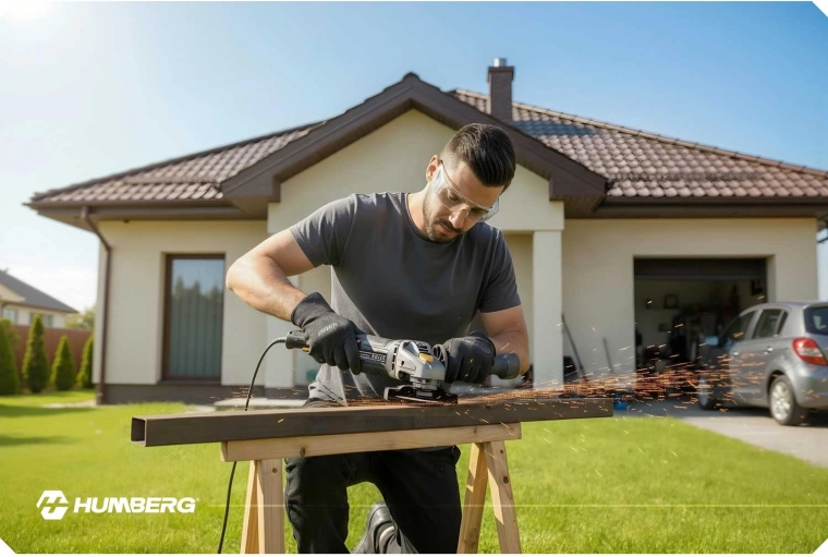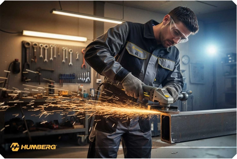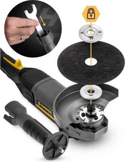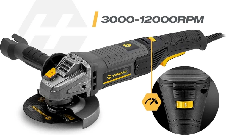 De HUMBERG haakse slijper 1200 W combineert hoog vermogen, precisie en veiligheid. Dankzij de toerentalregeling van 3000–12000 t/min pas je de snelheid eenvoudig aan het materiaal en de taak aan – van fijn slijpen tot snel doorslijpen. De metalen beschermkap, antisliphandgreep en gereduceerde vibraties zorgen voor zekere en comfortabele controle.