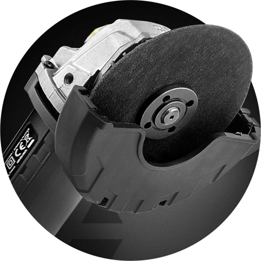 De set is rijk uitgerust voor direct gebruik: 10 doorslijpschijven van 125 mm, een metalen Quick‑Lock beschermkap voor snel, sleutelloos afstellen en een montagesleutel altijd binnen handbereik. De Safety‑Switch veiligheidsschakelaar voorkomt onbedoeld inschakelen en de M14‑schroefdraad zorgt voor compatibiliteit met gangbare accessoires.