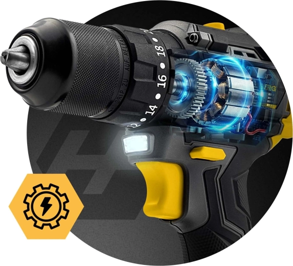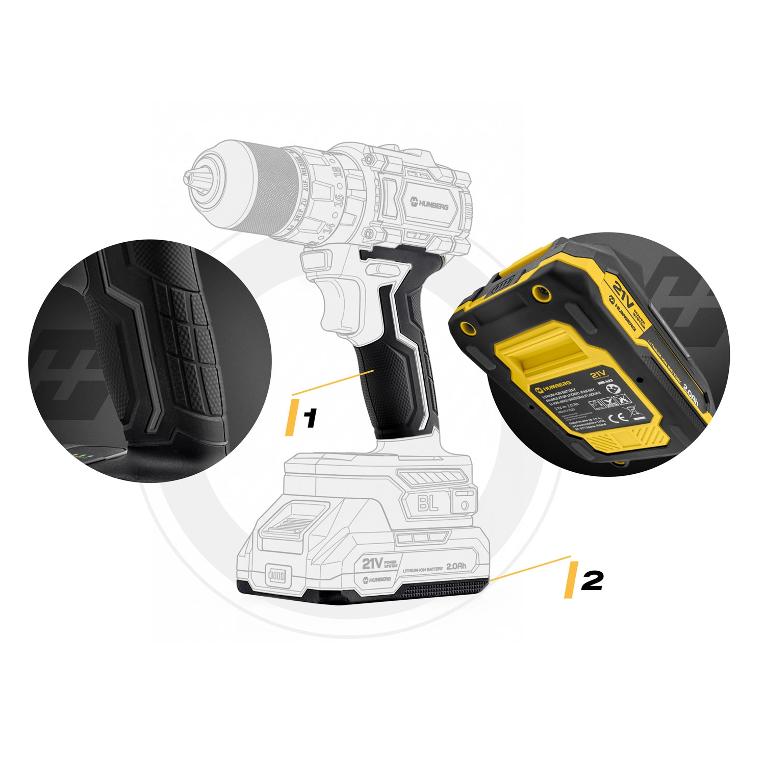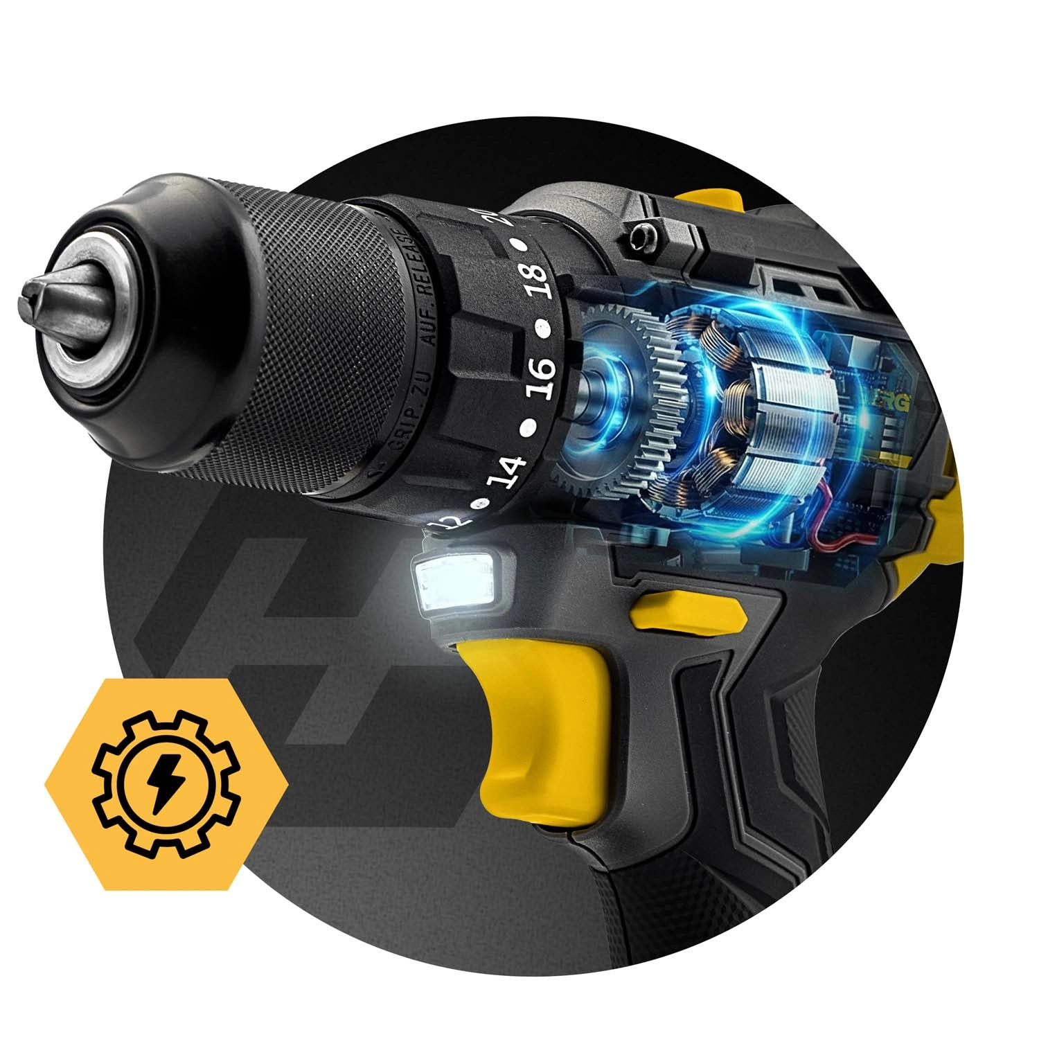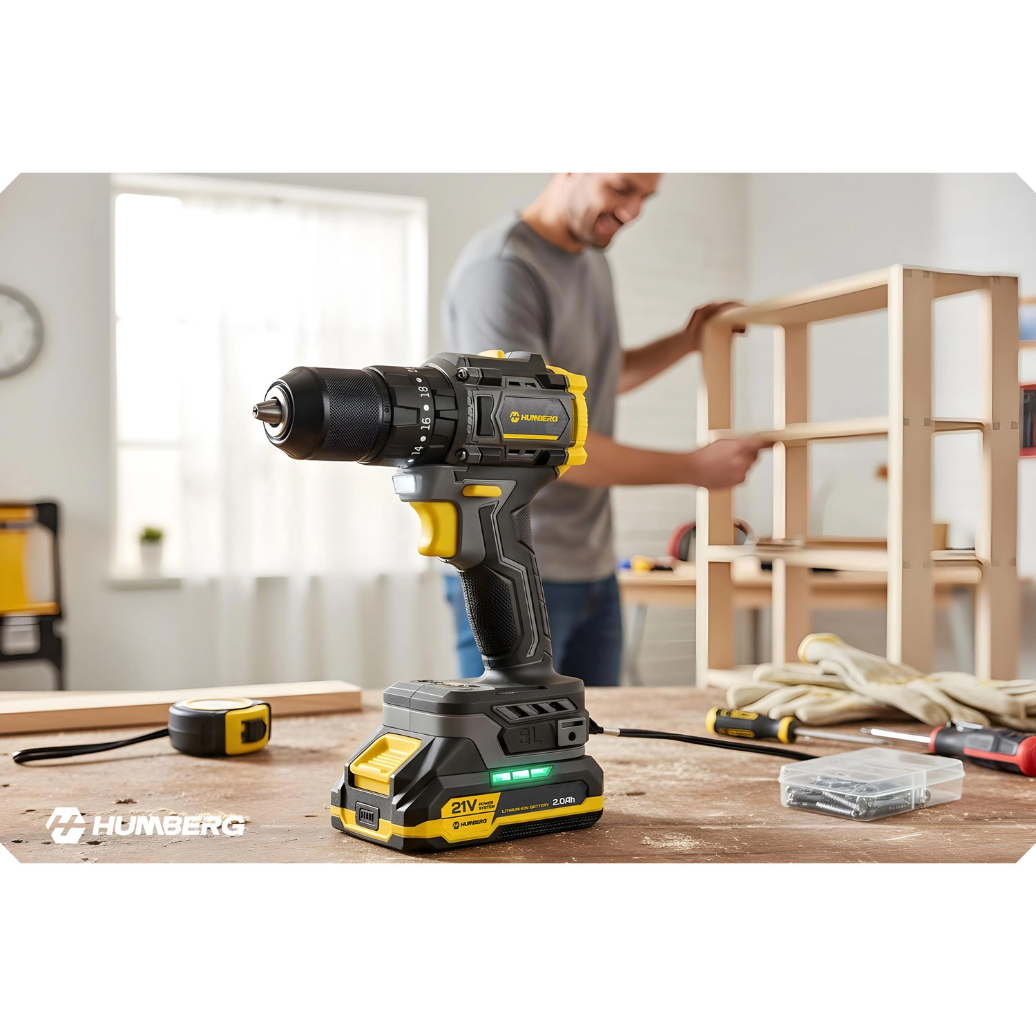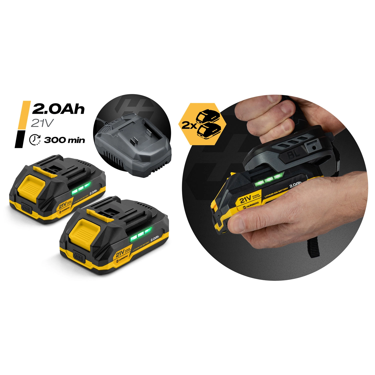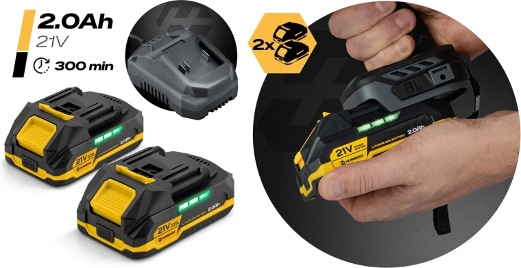 Deze accu-klopboormachine kan nauwkeurig schroeven, snel boren en klopboren in hardere materialen. De borstelloze motor zorgt voor hogere efficiëntie, langere levensduur en een soepele, trillingsarme loop. Dankzij de twee accu’s 21 V 2 Ah kunt u zonder onderbreking werken – terwijl de ene laadt, gebruikt u de andere.