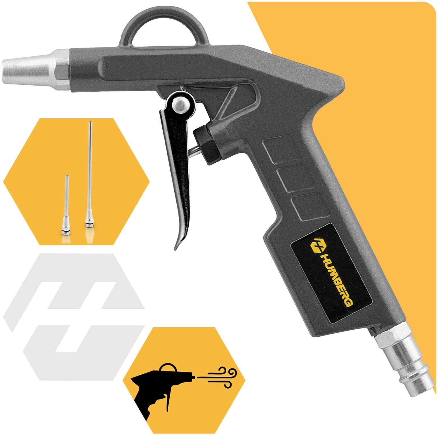 - Blaaspistool met smalle nozzle en 2 verwisselbare verlengstukken voor het reinigen van moeilijk bereikbare plaatsen.