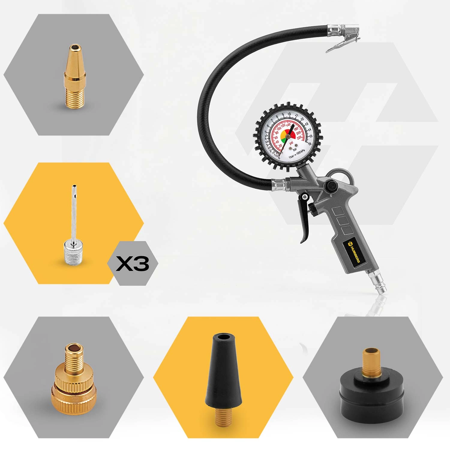- Vulpistool met manometer en 40 cm slang voor precieze drukcontrole.