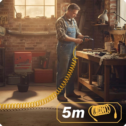 Voor veeleisendere media is er het conserveer-/applicatiepistool met 1 l reservoir – perfect voor onderbodembeschermers, smeermiddelen en anticorrosiemiddelen. De spiraalslang van 5 m is licht, flexibel en knikbestendig, waardoor een comfortabele reikwijdte en eenvoudig manoeuvreren rond de werkplek gegarandeerd is.