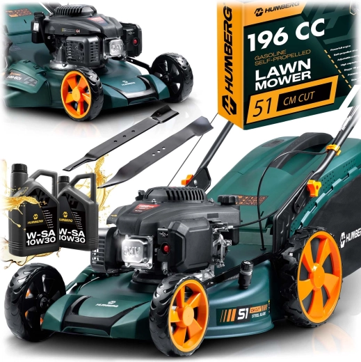 Krachtige benzinemaaier met zelfaandrijving en een maaibreedte van 51 cm die moeiteloos dicht en hoog gras aankan. De LONCIN 196 cc motor biedt stabiele prestaties en een gemakkelijke start, terwijl de centrale hoogteverstelling in 6 standen (30–80 mm) voor een precies maairesultaat zorgt. De grote opvangzak van 70 l, drie maaimodi (opvangen, zijuitworp, mulchen) en het duurzame stalen chassis maken deze maaier tot een betrouwbare hulp voor grote tuinen en oneffen terrein.