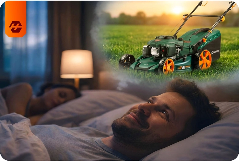 - Centrale hoogteverstelling 6 posities (30–80 mm) – van siergazon tot doorgeschoten gras.