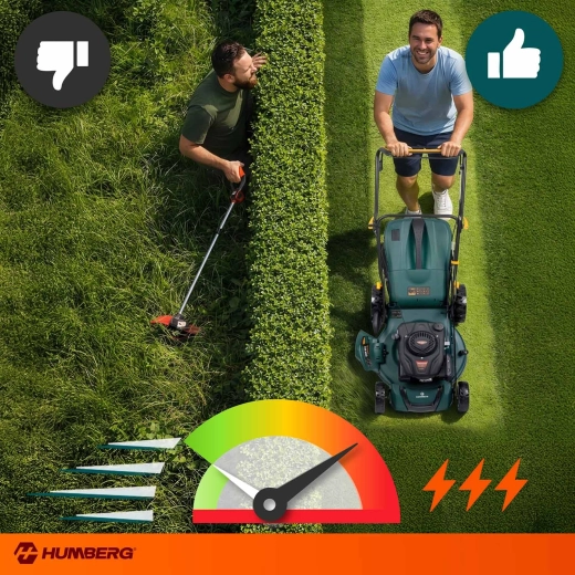 Het bredere mes verkort de maaitijd en zorgt voor een rechte snijlijn. Gehard staal is slijtvast en levert een zuivere snede al bij de eerste doorgang.