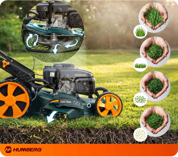 - 3-in-1: opvangen, zijuitworp, mulchen – flexibiliteit voor elk type gazon.