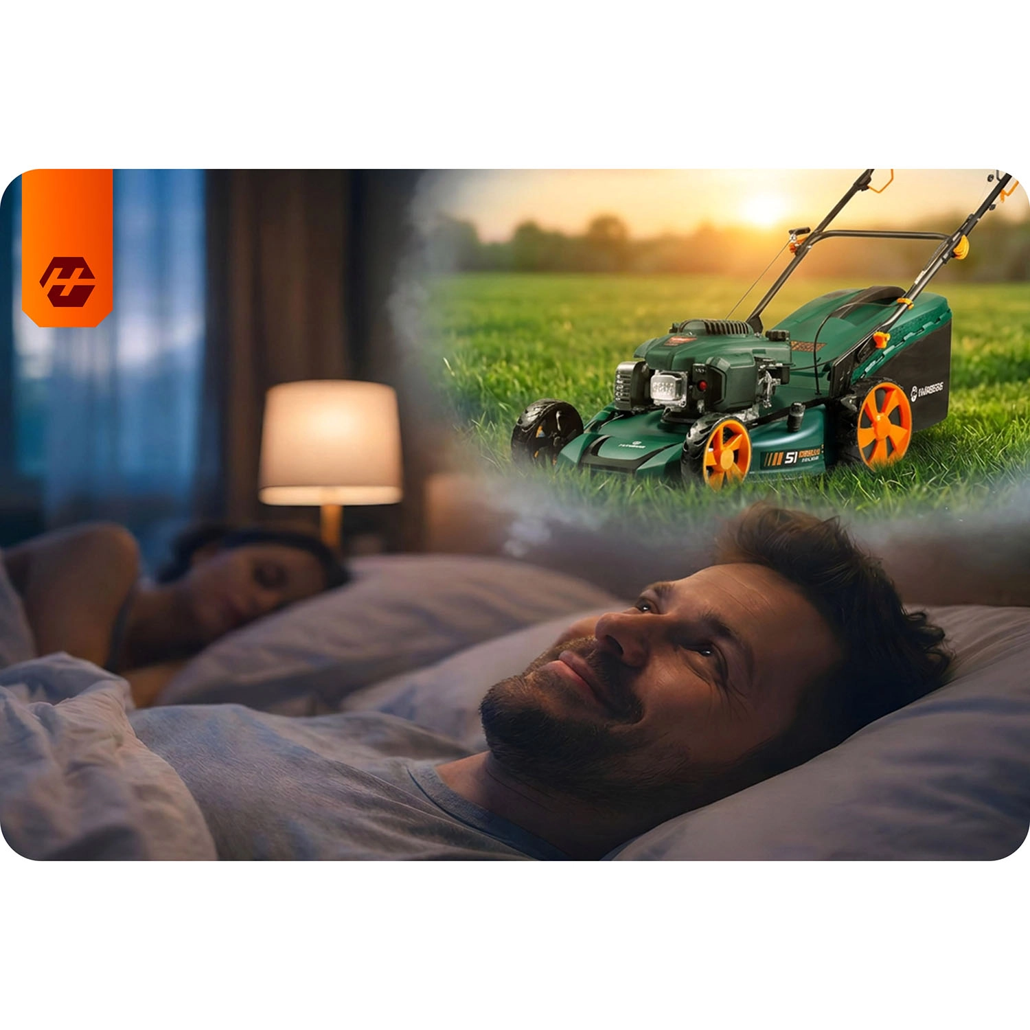 Deze robuuste benzinemaaier met zelfaandrijving is ontworpen voor snelle en efficiënte verzorging van grotere oppervlakken. De LONCIN 196 cc viertaktmotor met hoog koppel levert vermogen voor soepel maaien van dicht gras, terwijl het 51 cm stalen, geharde mes een schone snede al bij de eerste doorgang garandeert. Dankzij de centrale hoogte-instelling van 30–80 mm pas je de uitstraling van het gazon eenvoudig aan de actuele omstandigheden aan.