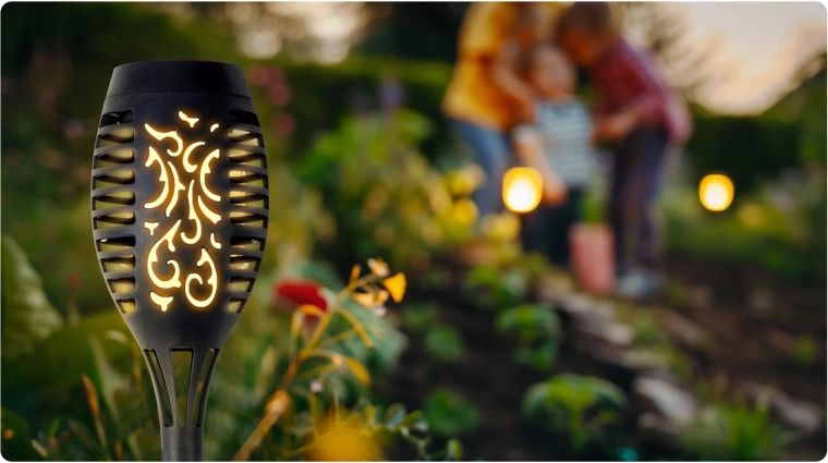 De ILLUMEN zonnelampen vallen op door hun elegante fakkeluitstraling, die perfect past tussen hogere bloemen en vaste planten. De ingebouwde lichtsensor schakelt de lampen na zonsondergang automatisch in en tovert een aangename, warme verlichting met een decoratief patroon. Dankzij het amorfe paneel laden de lampen betrouwbaar op, ook bij minder zon.