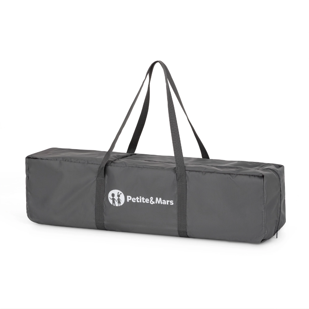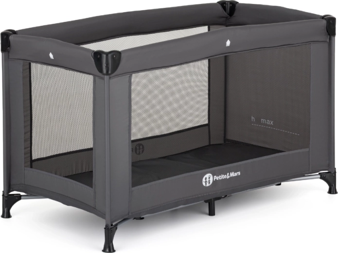 Het lichte en compacte reisbed PETITE&MARS Koot Lite in een elegante donkergrijze kleur is ideaal voor op reis en thuis. Het biedt een stabiele metalen constructie, ademende gaaszijwanden voor betere luchtcirculatie en een Double Lock-veiligheidssysteem tegen onbedoeld inklappen. Het is gemakkelijk in te klappen, past in de draagtas en is geschikt voor kinderen tot 15 kg.