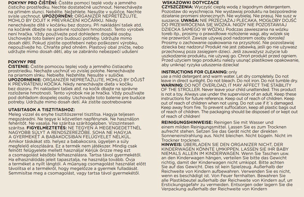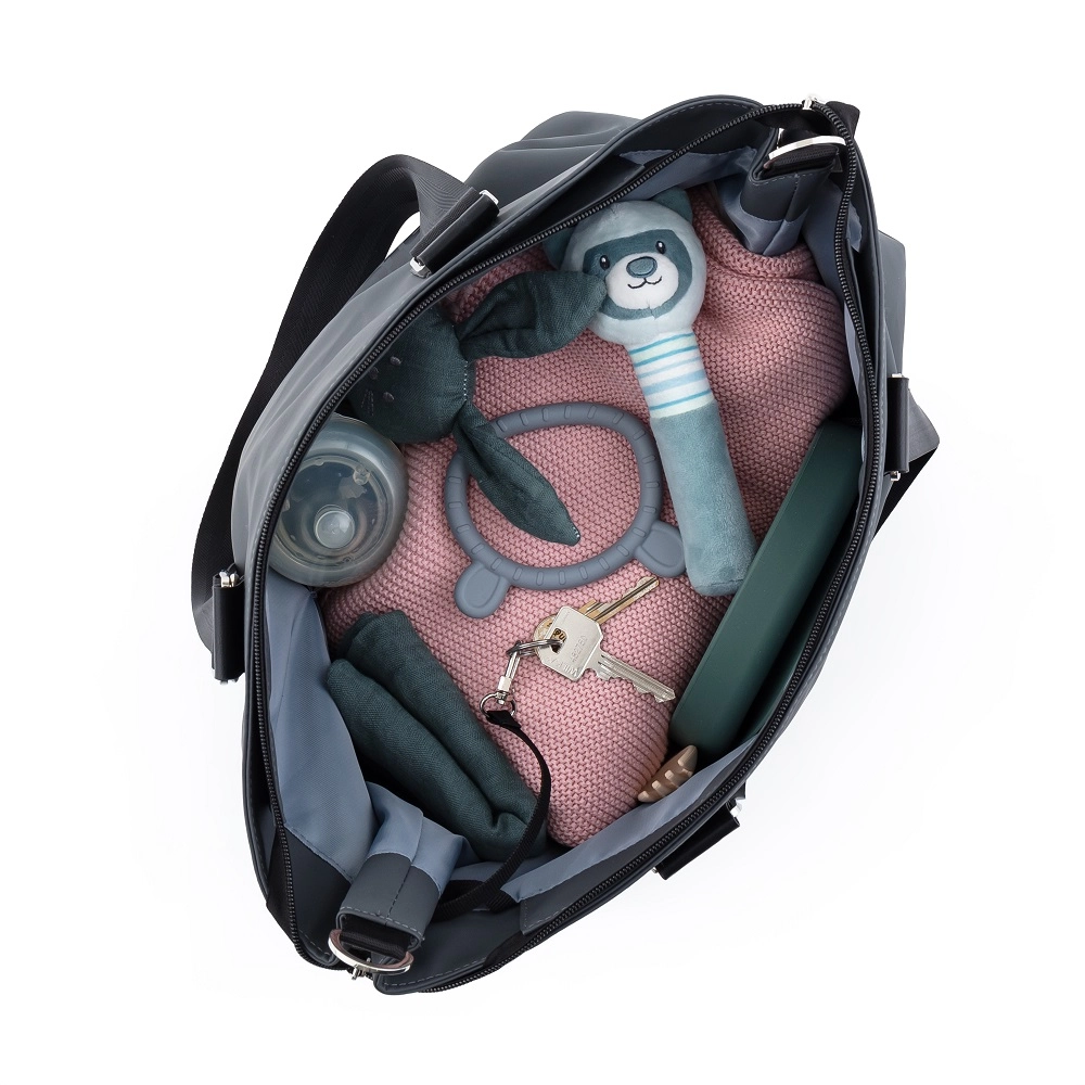 De tas is gemaakt van duurzaam, vochtbestendig polyester en heeft een thermovak om de temperatuur van de fles te behouden, een waterdicht vak voor natte kleding, een tabletvak en een sleutelkoord. In de set zit een opvouwbaar verschoningsmatje. Afneembare riemen maken een veilige bevestiging aan de kinderwagen mogelijk, terwijl de comfortabele schouderriemen fijn zijn om over de schouder te dragen.