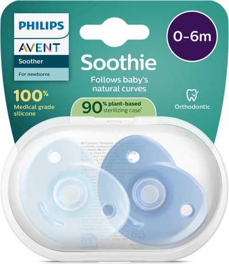 De Philips Avent Soothie fopspeen is ontwikkeld in samenwerking met medische professionals en wordt gedistribueerd in ziekenhuizen in de VS. Dankzij het eendelige siliconenlichaam is hij gemakkelijk af te wassen, houdt hij geen water vast en biedt hij maximaal comfort, zelfs voor de allerkleinsten. De unieke vingeropening stelt ouders in staat het zuigen zachtjes te ondersteunen en zo de onderlinge band te versterken.