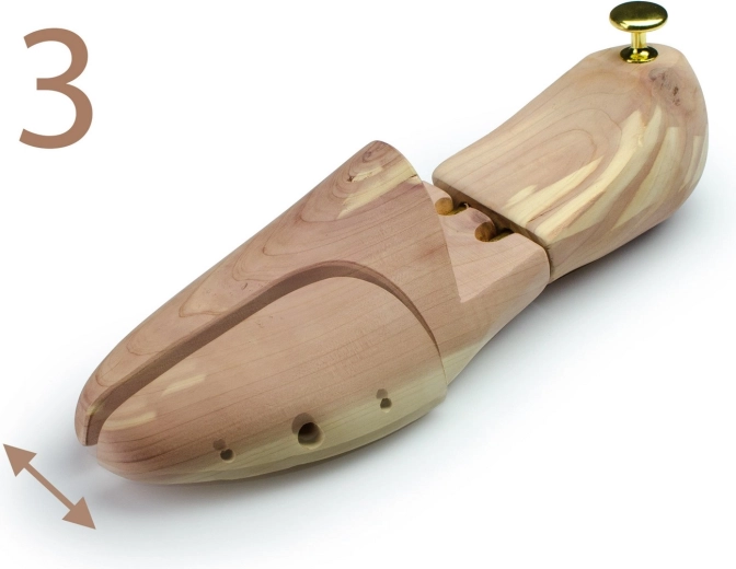 De cederhouten schoenspanners MASSIDO zijn ontworpen om de vorm van de menselijke voet zo getrouw mogelijk na te bootsen. Dankzij de precieze vulling van zowel de neus als de hiel behouden ze de oorspronkelijke vorm van de schoenen, minimaliseren ze breuken en rimpels in het leer en verlengen ze de levensduur van zowel formele als vrijetijdsschoenen.