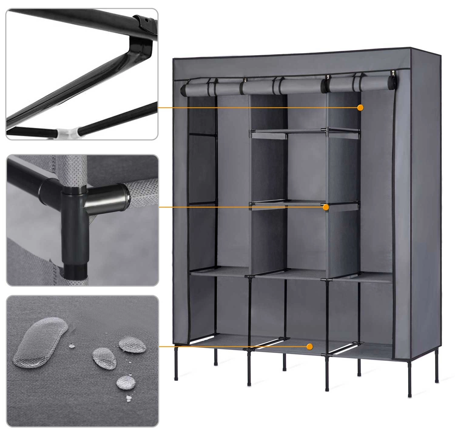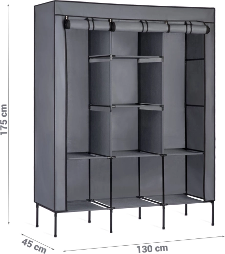 Houd orde in kleding, accessoires en seizoensspullen met de textiele kast Massido. Dankzij de combinatie van planken en hangruimte bergt u gemakkelijk overhemden, jurken en gevouwen truien op. De stevige hoes beschermt tegen stof en vocht, terwijl de ritssluiting snelle toegang biedt.