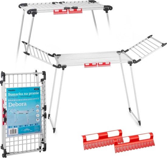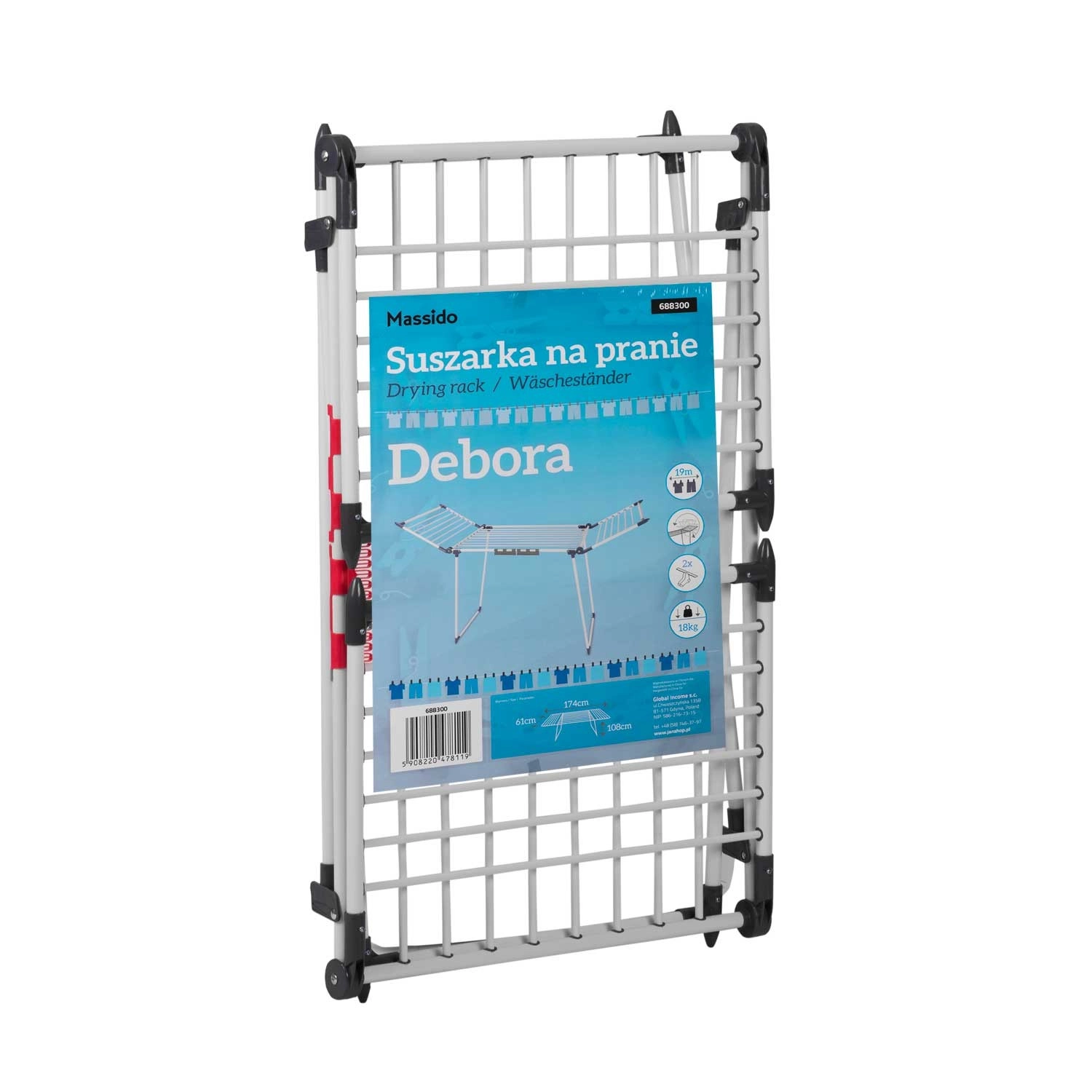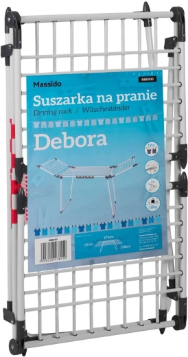 Zoek je een betrouwbaar droogrek dat je eenvoudig uitklapt, ruimte bespaart en een volledige wasbeurt aankan? Het opvouwbare droogrek Debora met 19 m drooglengte biedt comfortabel drogen zonder compromissen. Twee uitklapbare vleugels vergroten de ruimte precies naar behoefte en speciale houders voor klein wasgoed maken plaats vrij op de hoofdstangen.