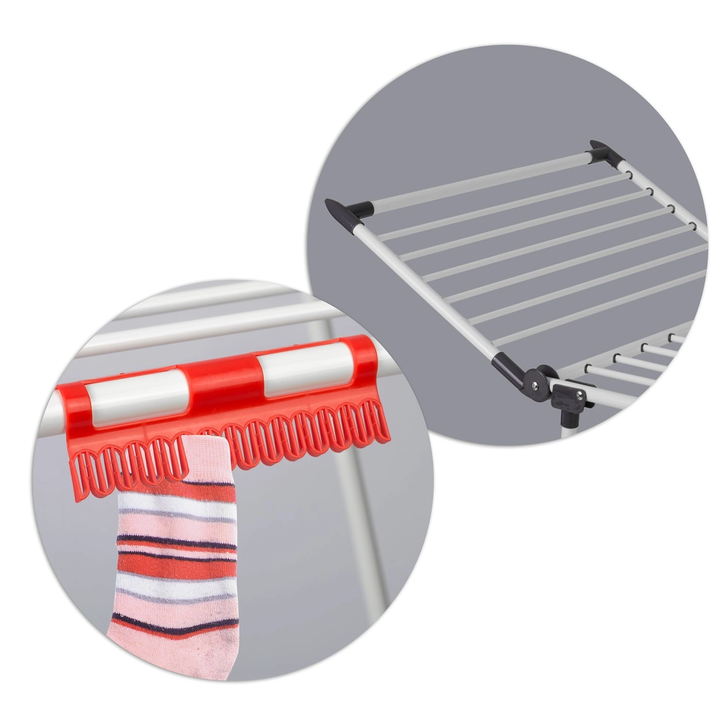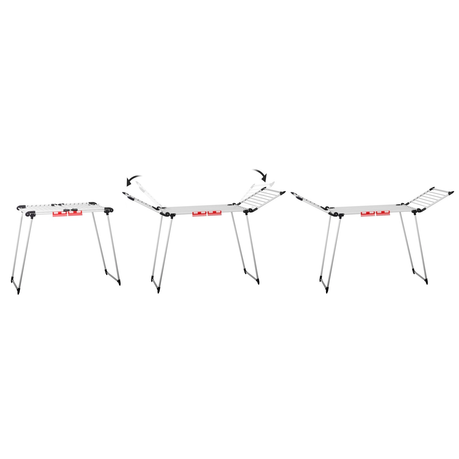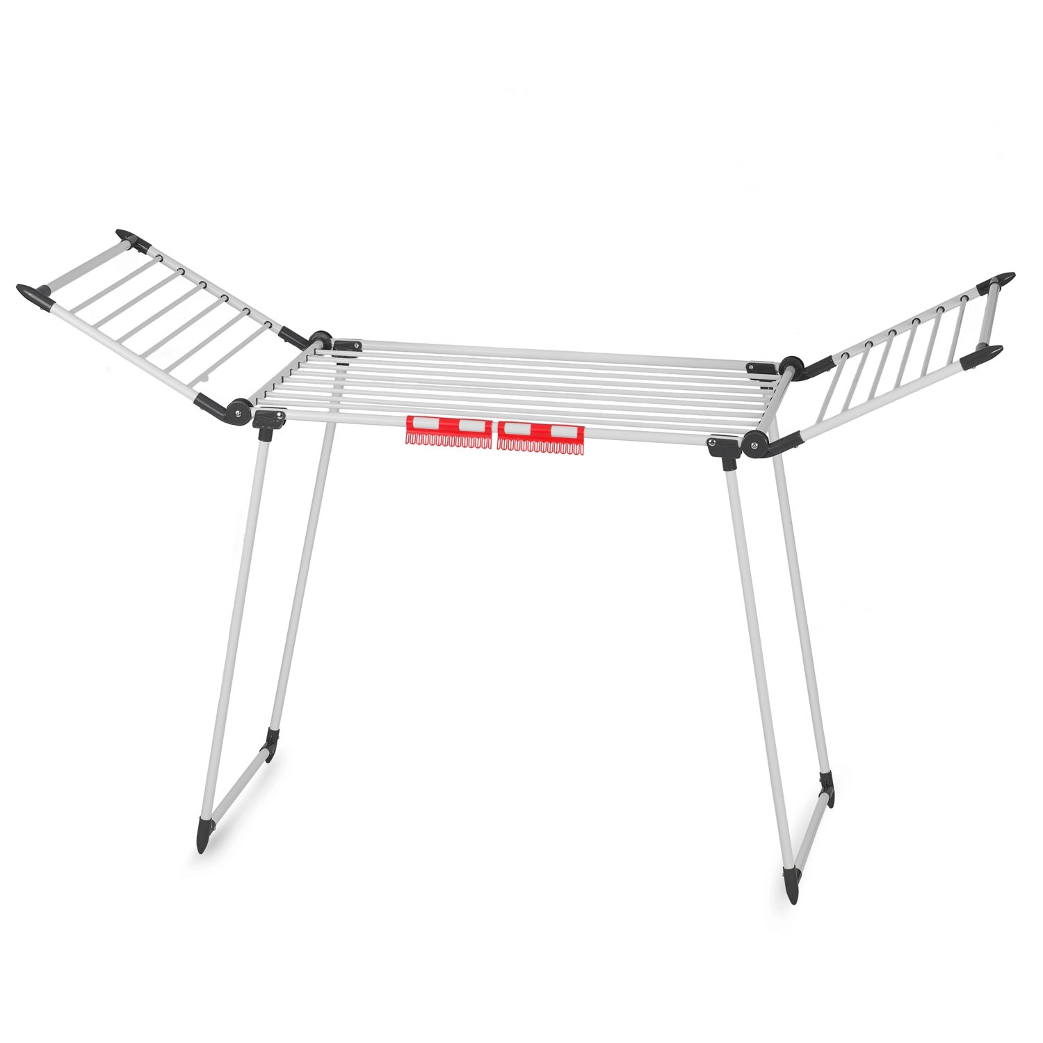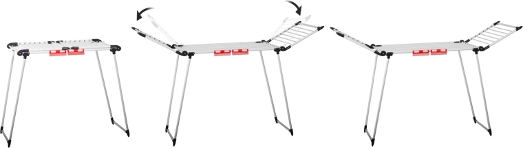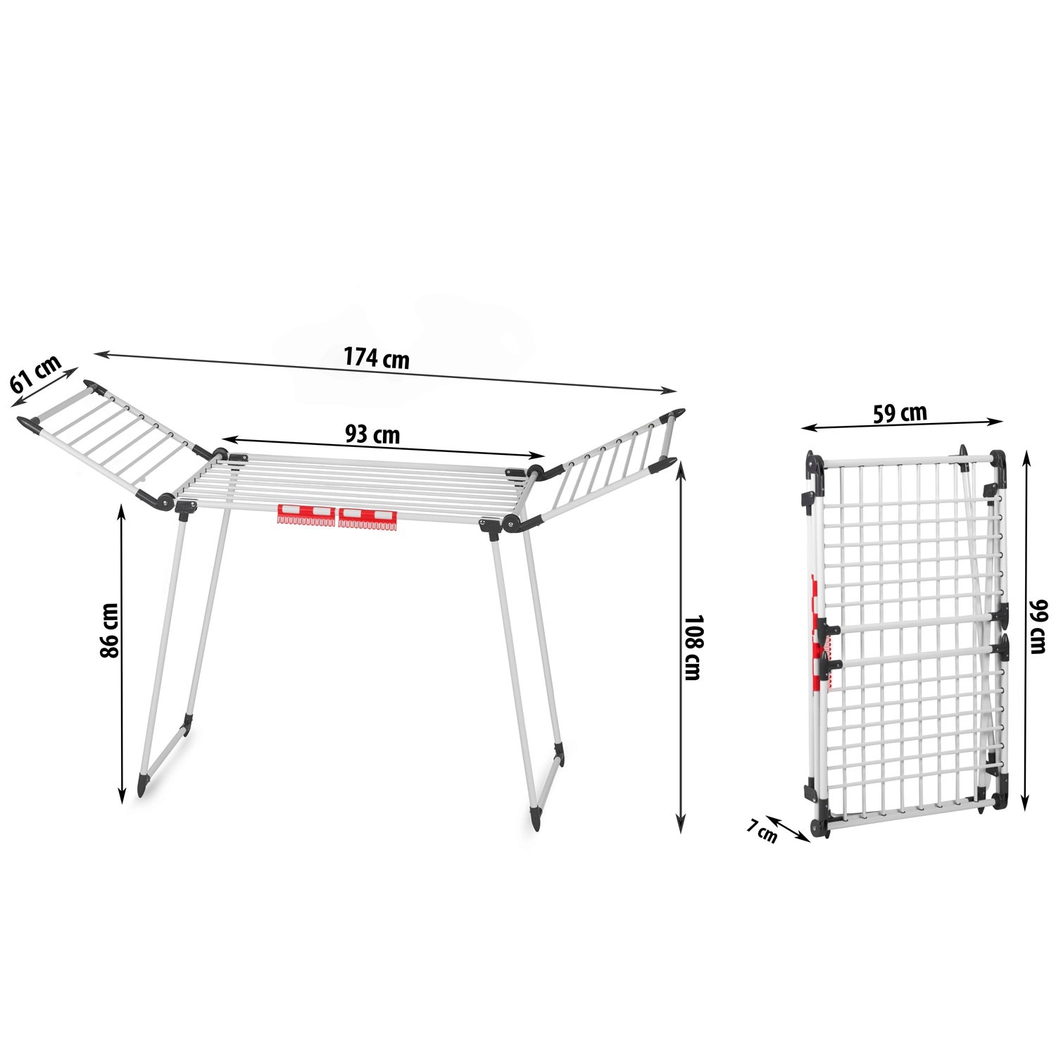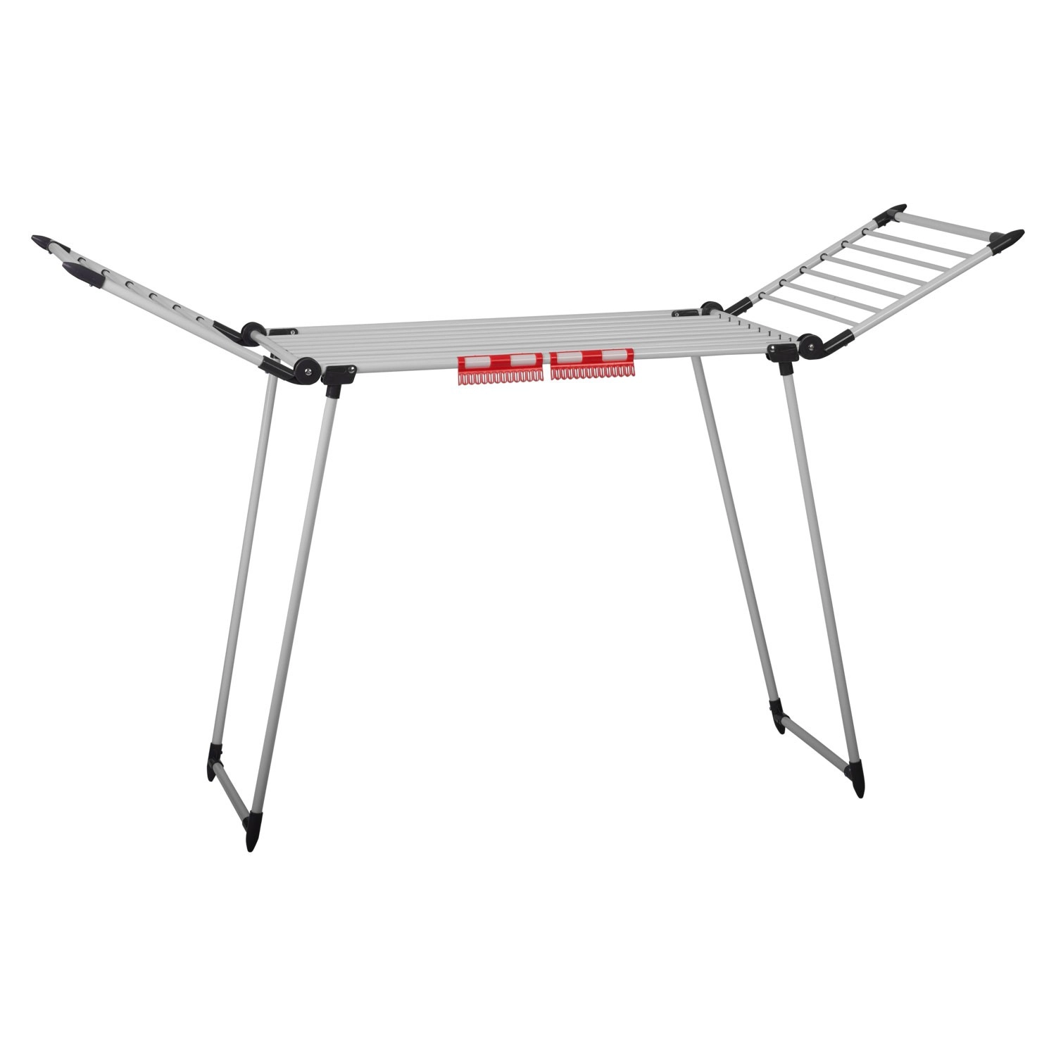 - Twee uitklapbare vleugels, houders/clips voor klein wasgoed