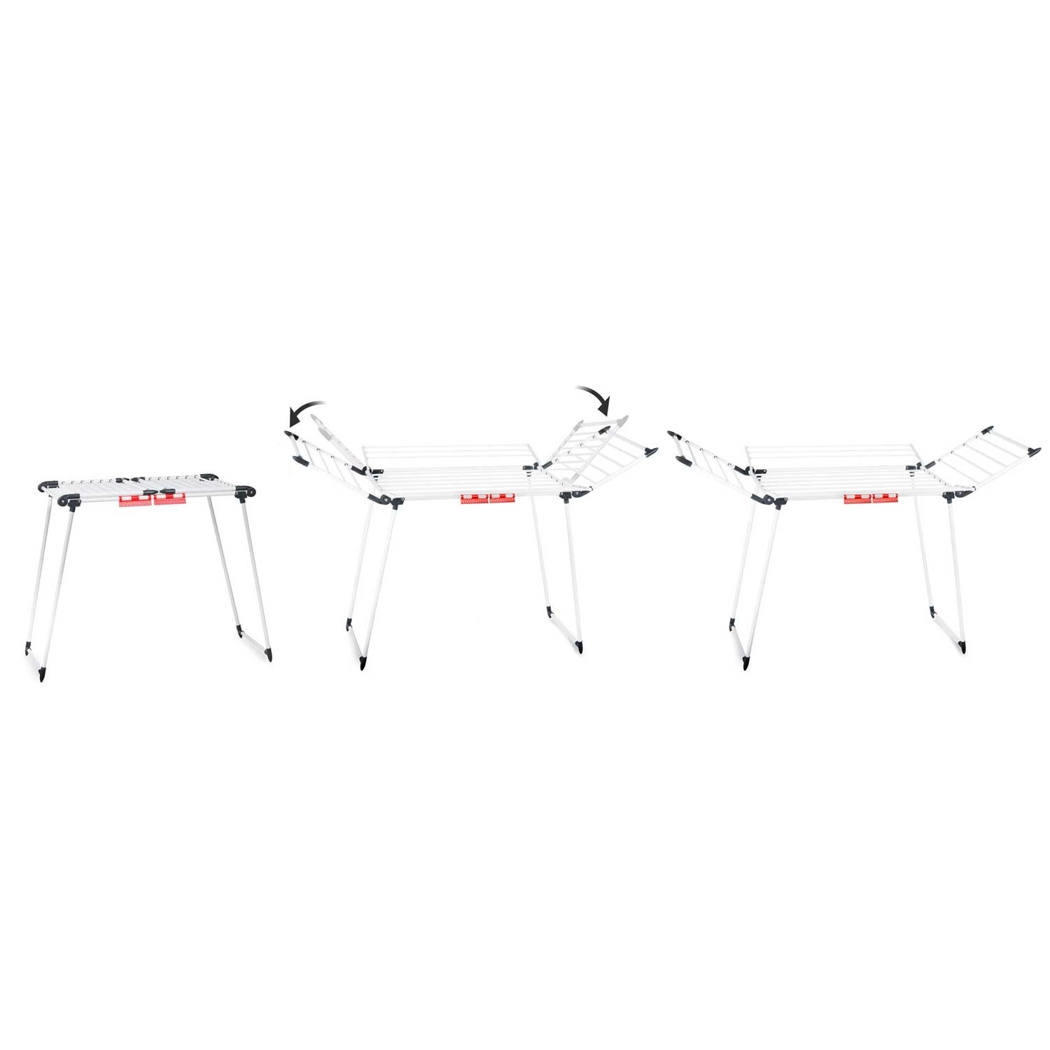 Breid het wasrek precies uit naar behoefte. Vleugels zijn eenvoudig op te tillen en bieden extra ruimte voor overhemden, handdoeken en delicate stoffen.