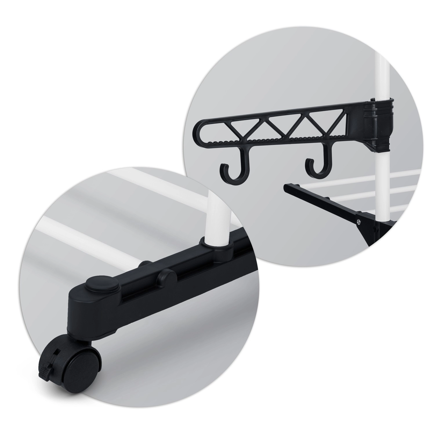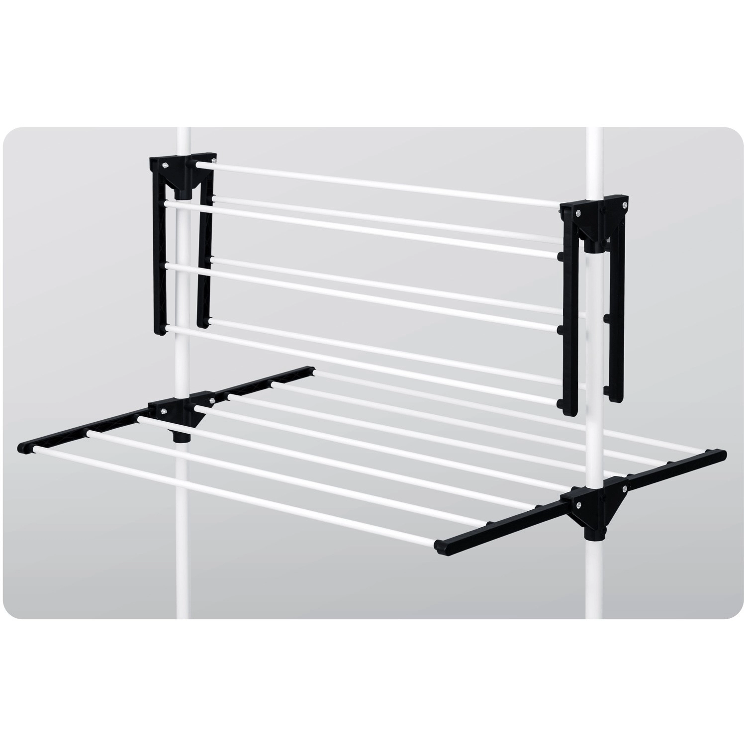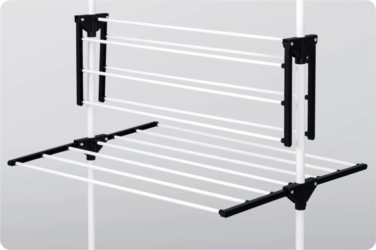 Zijhouders voor kleerhangers en klein wasgoed besparen ruimte. Inklapbare armen pas je aan de actuele hoeveelheid was aan.