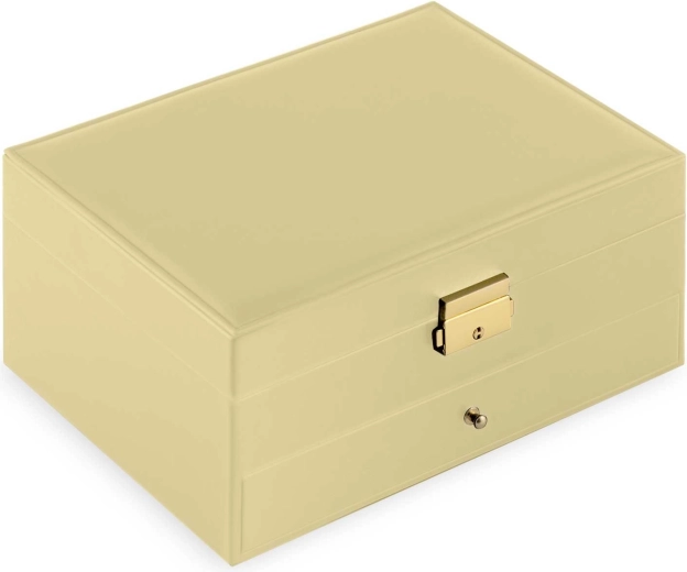 Elegante en zorgvuldig afgewerkte sieradendoos voor het veilig opbergen van ringen, oorbellen, armbanden en kettingen. Licht, afsluitbaar en draagbaar, met praktische vakken, foamrollen voor ringen, oorbellentableau, haakjes voor kettingen en een lade. Een intern spiegeltje en zachte voering beschermen sieraden tegen krassen. Een uitstekende keuze voor vrouwen en tienermeisjes.