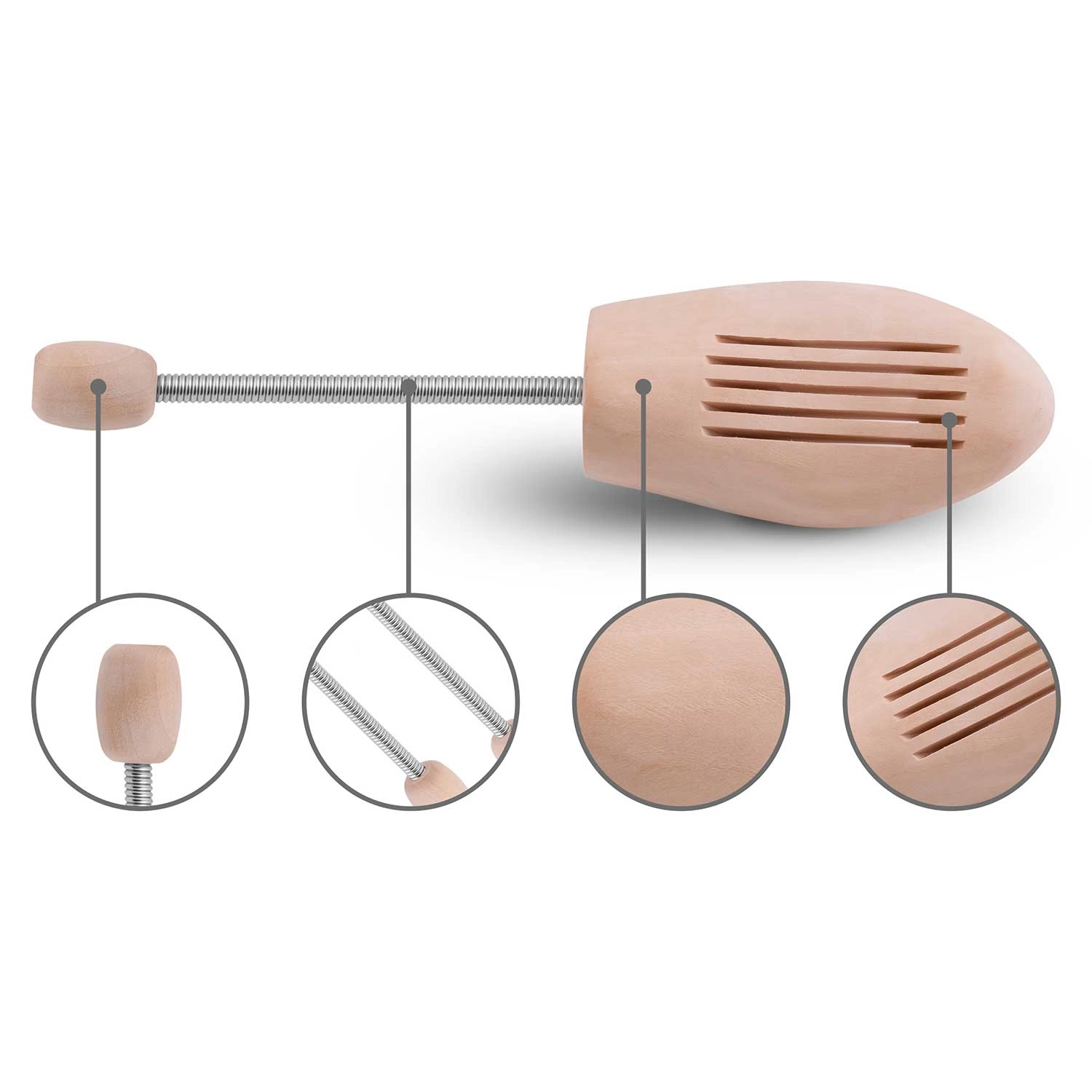 Geef je schoenen professionele verzorging. De veerspanners van MASSIDO, gemaakt van grenenhout, egaliseren direct het leren bovenwerk, spannen de neus en de wreef en versnellen het drogen na het dragen. Dankzij de effectieve vochtopname door het natuurlijke hout blijven je schoenen fris en vrij van ontsierende kreuken.