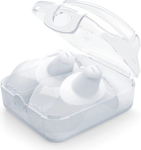 De zacht ingedrukte speen met precies ontworpen openingen zorgt voor een vloeiende melkstroom zonder verstopping. Dankzij de geribbelde randen blijft de beschermer goed op zijn plaats en is hij gemakkelijk te hanteren. In de verpakking vindt u een praktisch etui dat tevens kan worden gebruikt voor eenvoudige sterilisatie – ideaal voor thuis en onderweg.