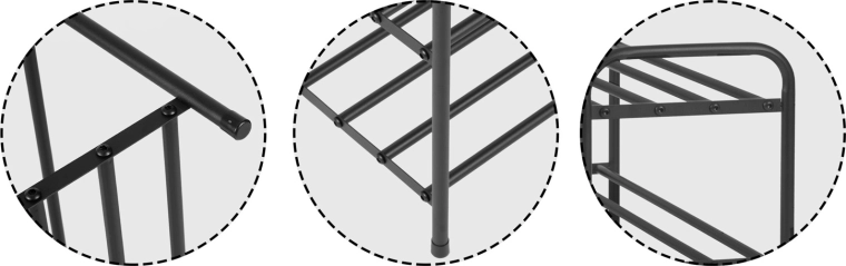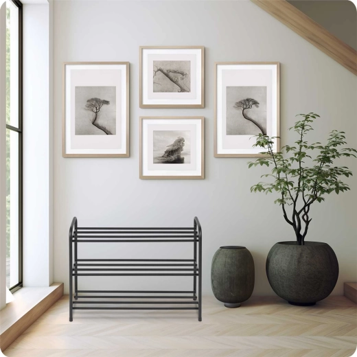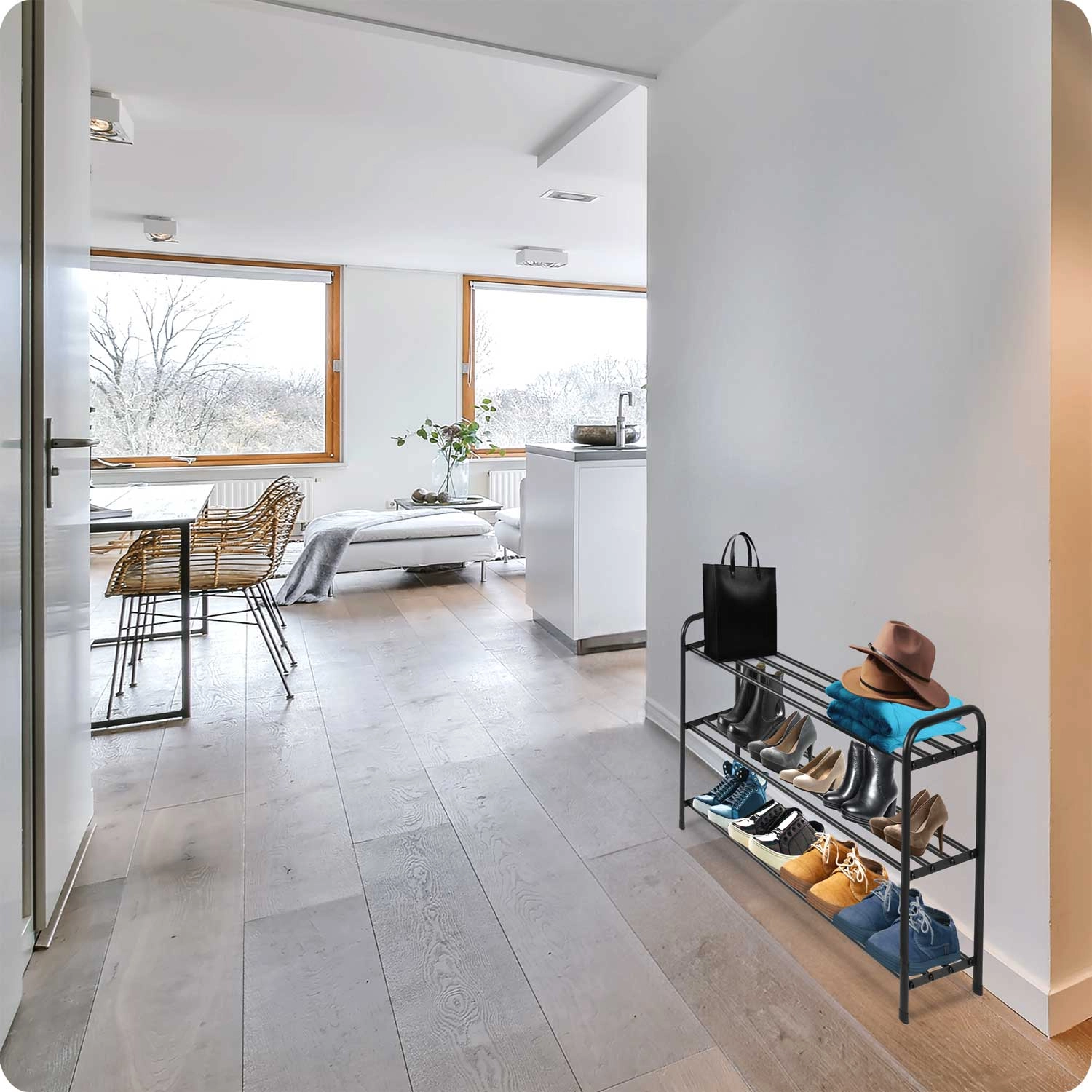 Het Massido schoenenrek met drie niveaus helpt je schoenen overzichtelijk geordend en altijd binnen handbereik te houden. Het stabiele metalen frame en de open roosters zorgen voor een betere luchtstroom, waardoor schoenen droog en geurvrij blijven en niet vervormen.