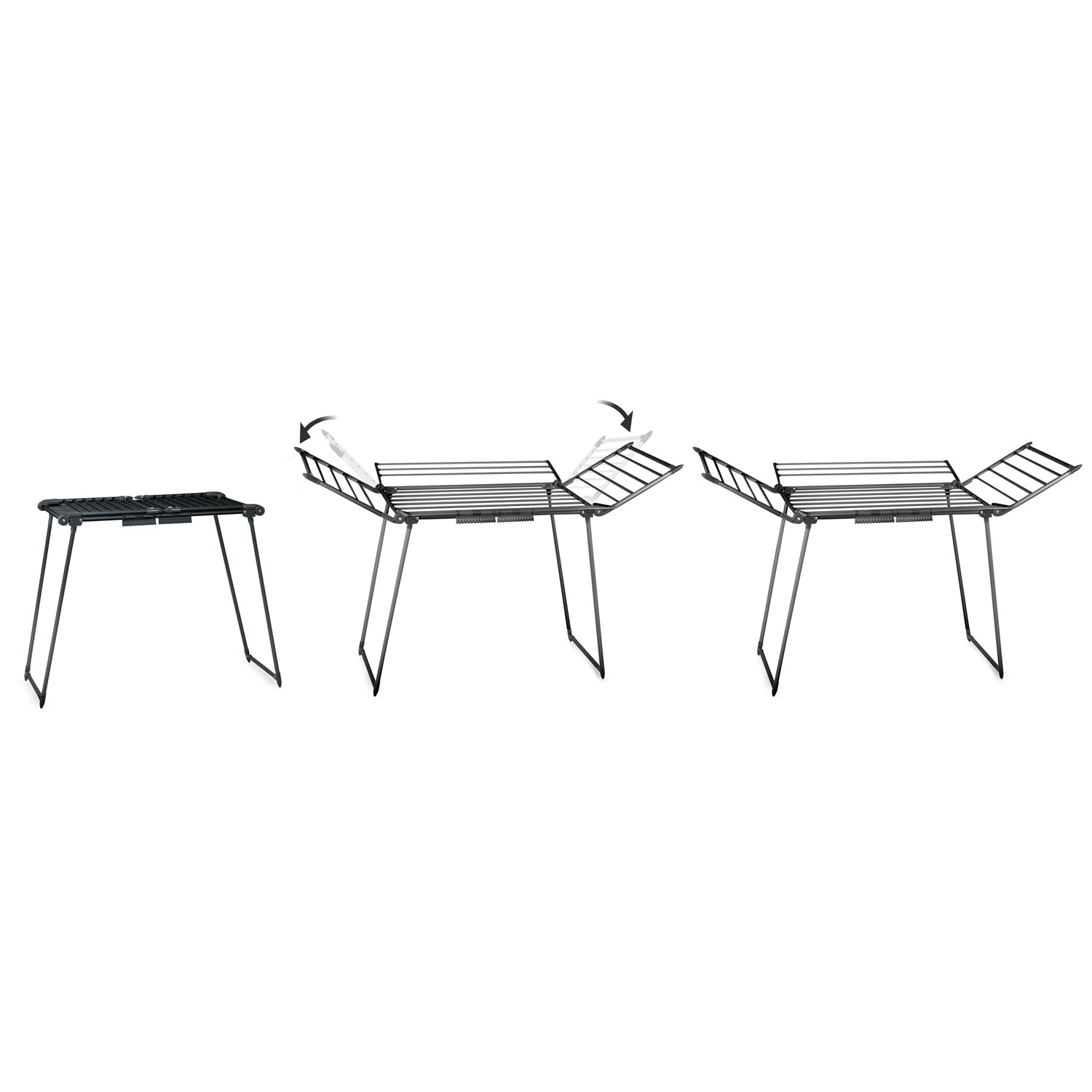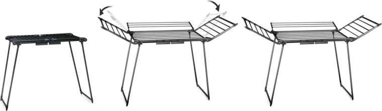 De gelakte stalen constructie is stevig en stabiel, terwijl het droogrek na het drogen snel kan worden ingeklapt tot een compact formaat om ruimte te besparen.