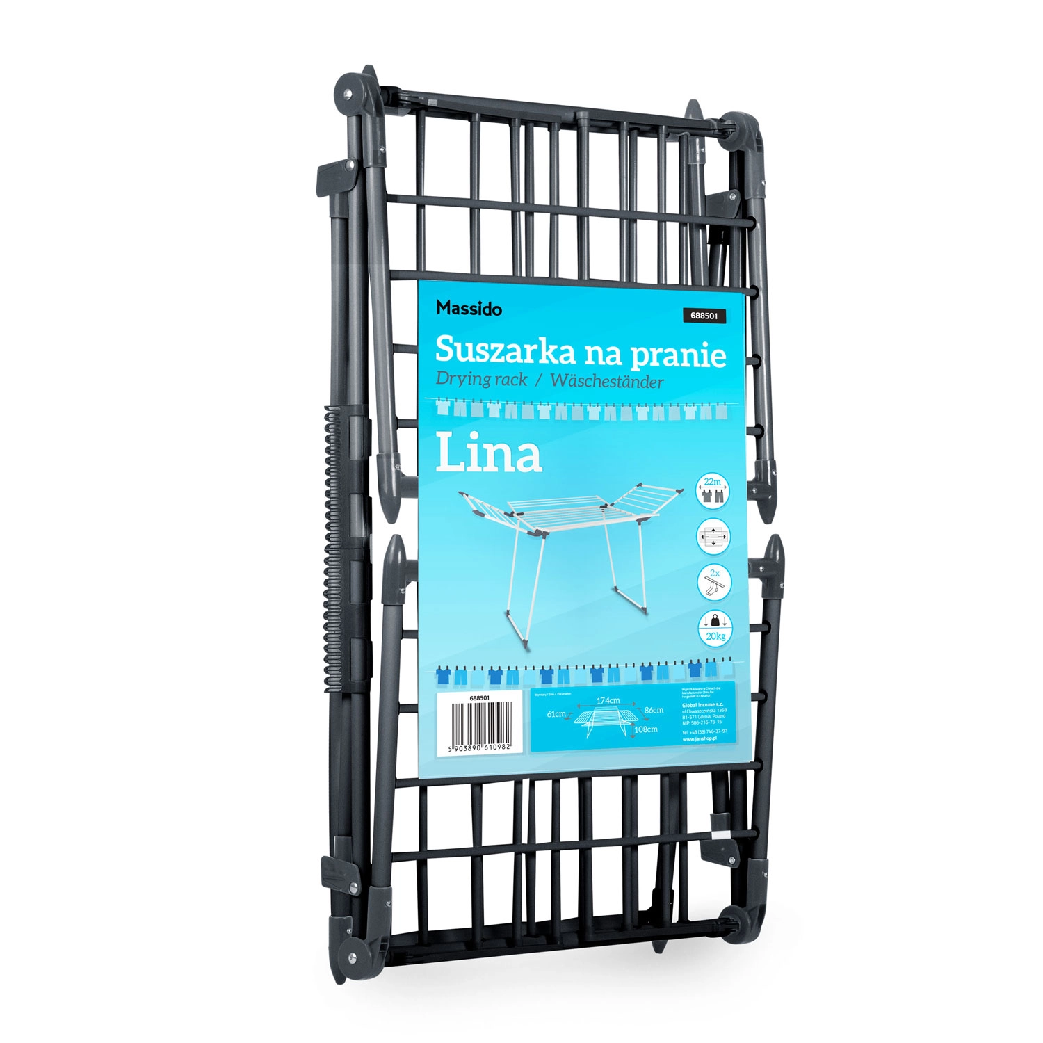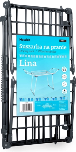 Zoek je een ruim maar toch compact op te bergen droogrek dat het dagelijks wasgoed én grotere ladingen aankan? Massido LINA met 22 m drooglengte biedt voldoende plaats voor overhemden, broeken en beddengoed. Het stevige, poedergecoate staal zorgt voor stabiliteit en een lange levensduur, terwijl het moderne zwarte design perfect past in elke wasruimte of badkamer.