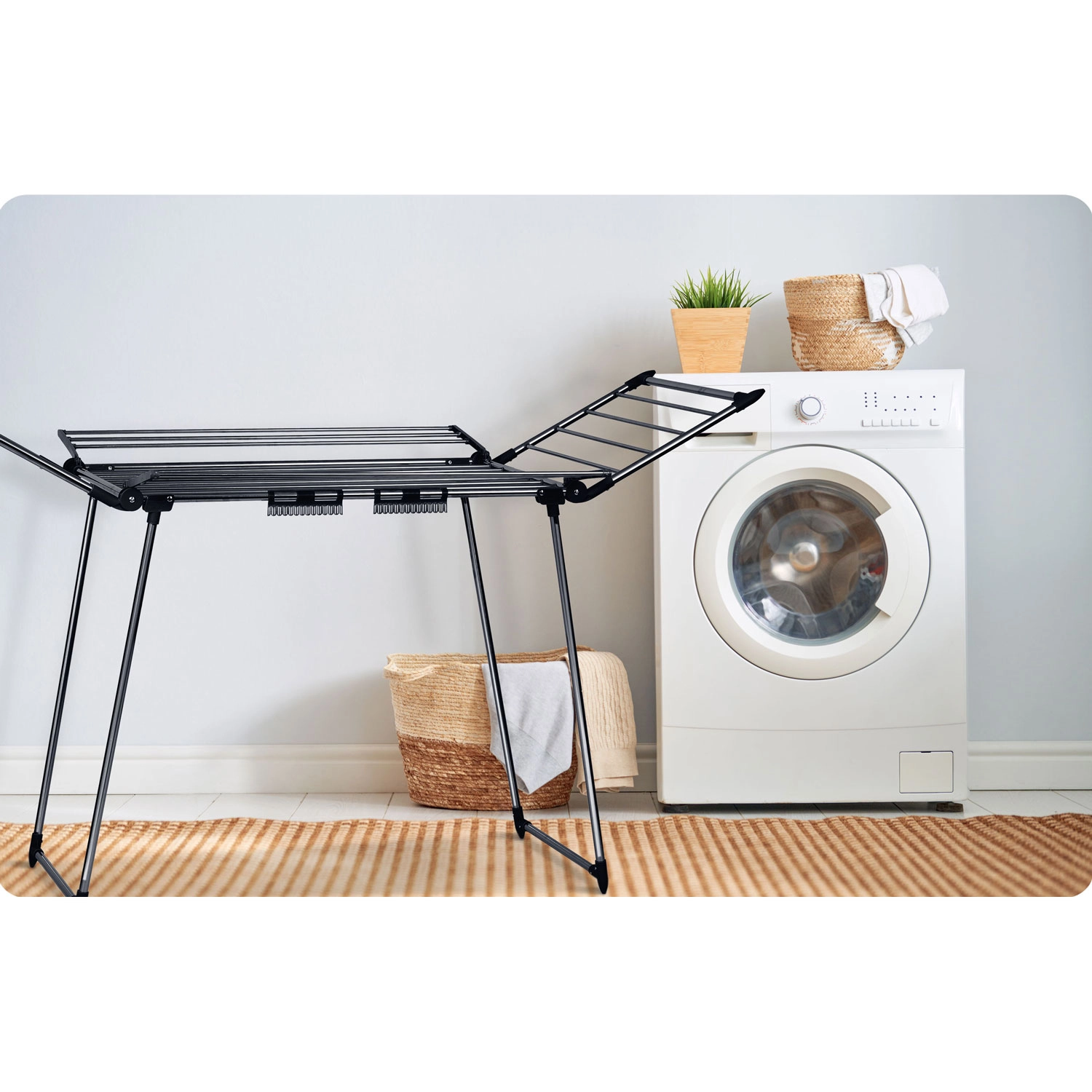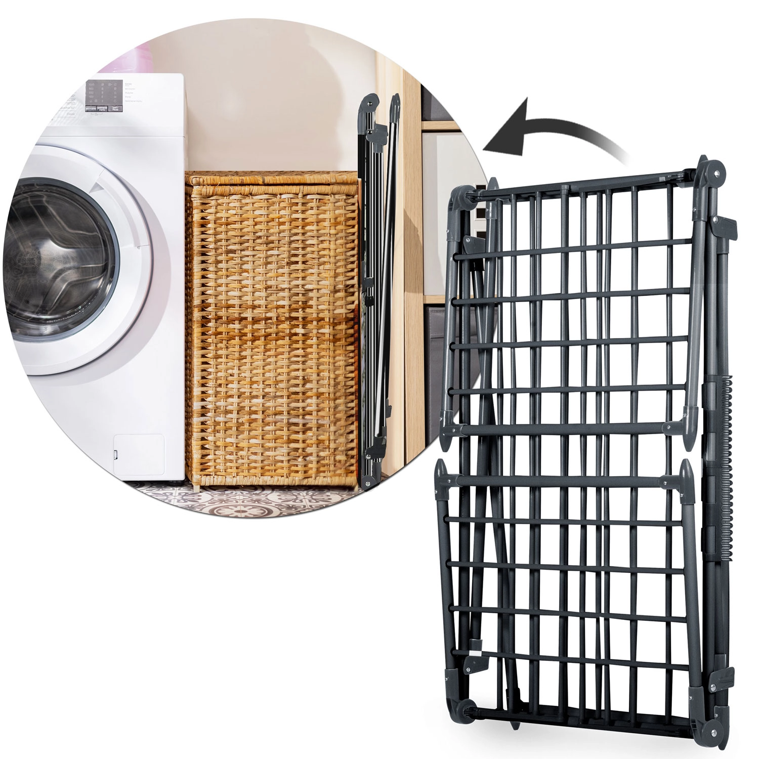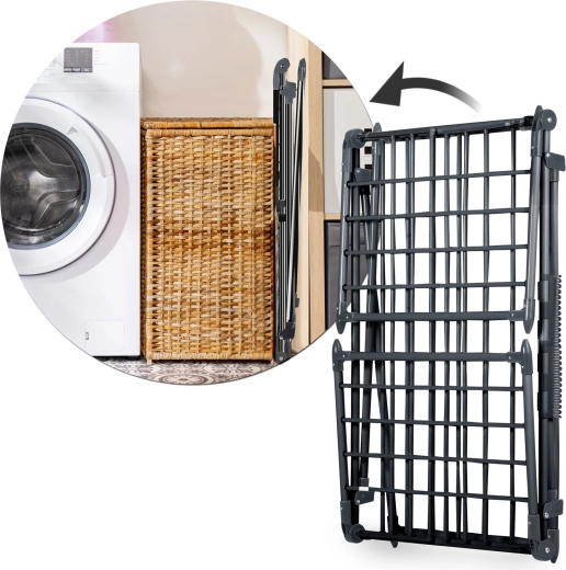 Na het drogen klap je het rek eenvoudig in tot een compact formaat en berg je het naast de wasmachine of in een kast op. Ideaal voor wie zuinig, zacht en efficiënt wil drogen zonder wasdroger.