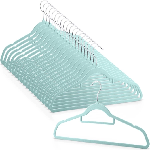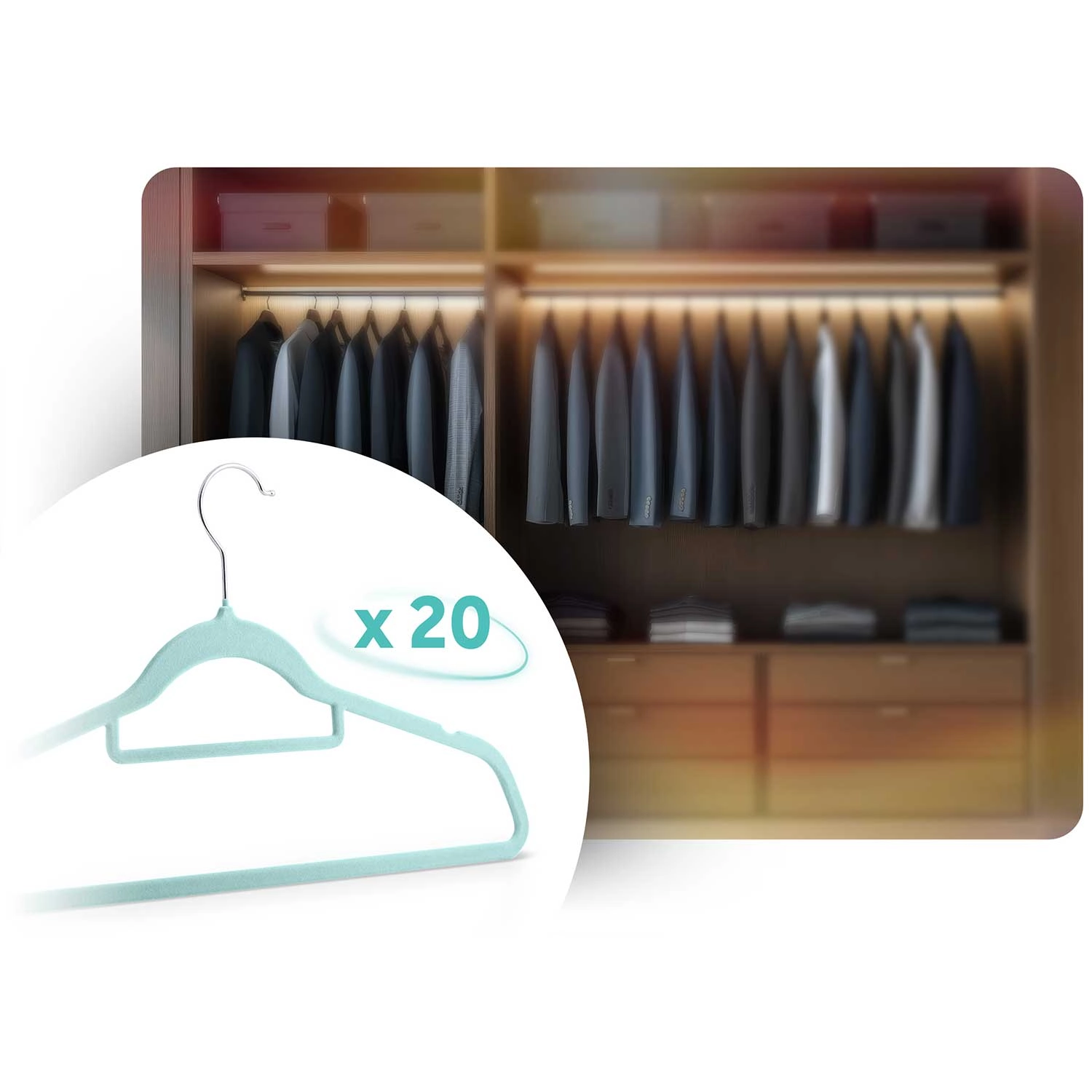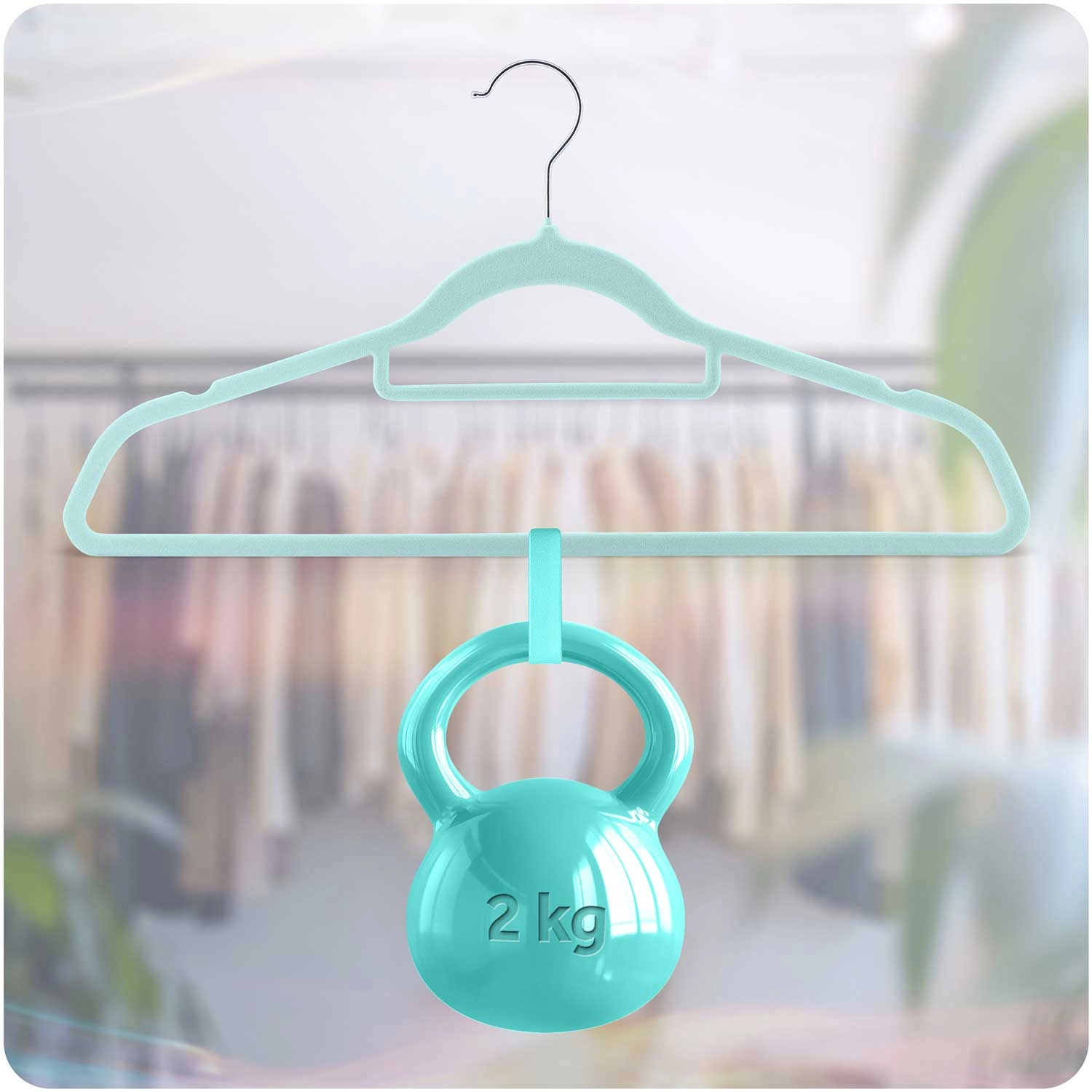 De praktische en stijlvolle set velours kledinghangers MASSIDO zorgt voor orde en zorgvuldige behandeling van je kleding. Zacht velours vormt een anti‑slip oppervlak dat voorkomt dat overhemden, jurken en colberts wegglijden, terwijl de stevige PP‑kern de vorm behoudt en niet doorbuigt, zelfs niet bij zwaardere stukken.