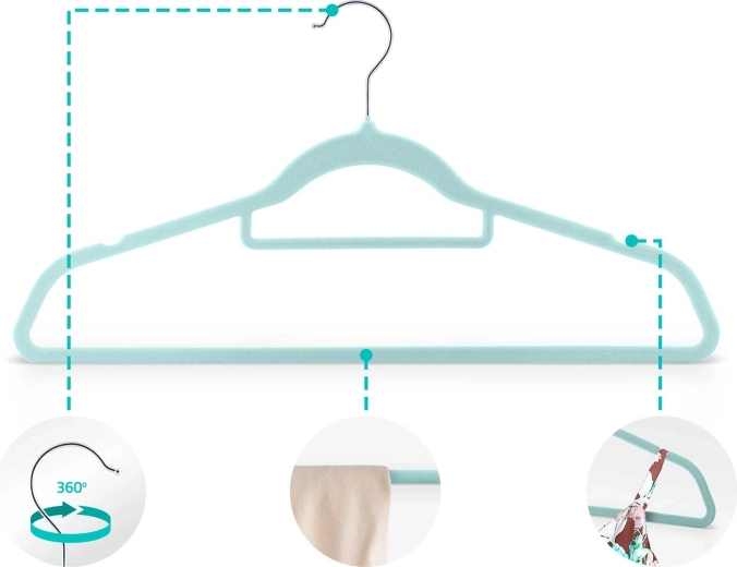 Het zachte, fluweelachtige oppervlak beschermt stoffen en voorkomt dat jurken, overhemden en delicate tops met smalle bandjes wegglijden.