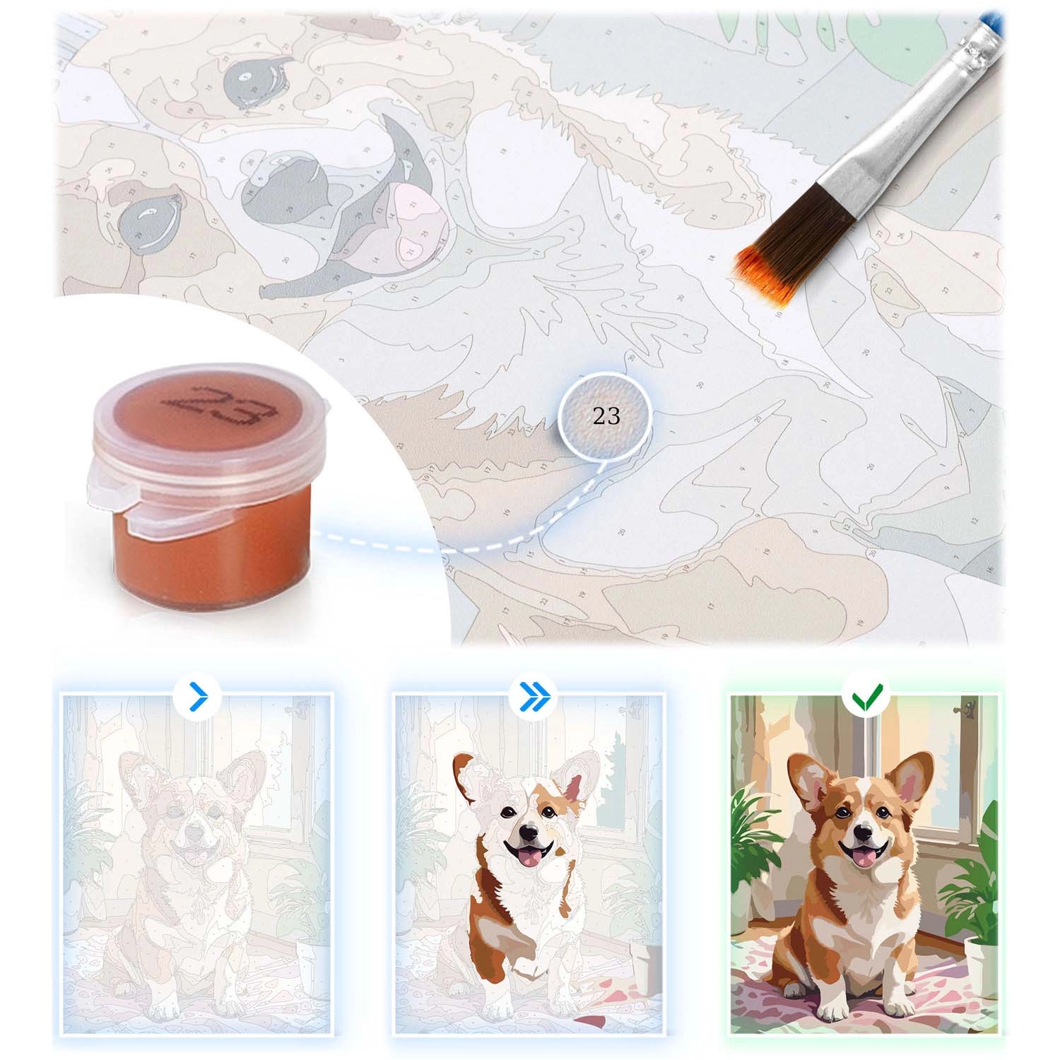 Elk vlak heeft een eigen nummer – koppel simpelweg de juiste kleur en schilder stap voor stap. Ideaal voor beginners en gevorderden, met een zeker en precies eindresultaat.