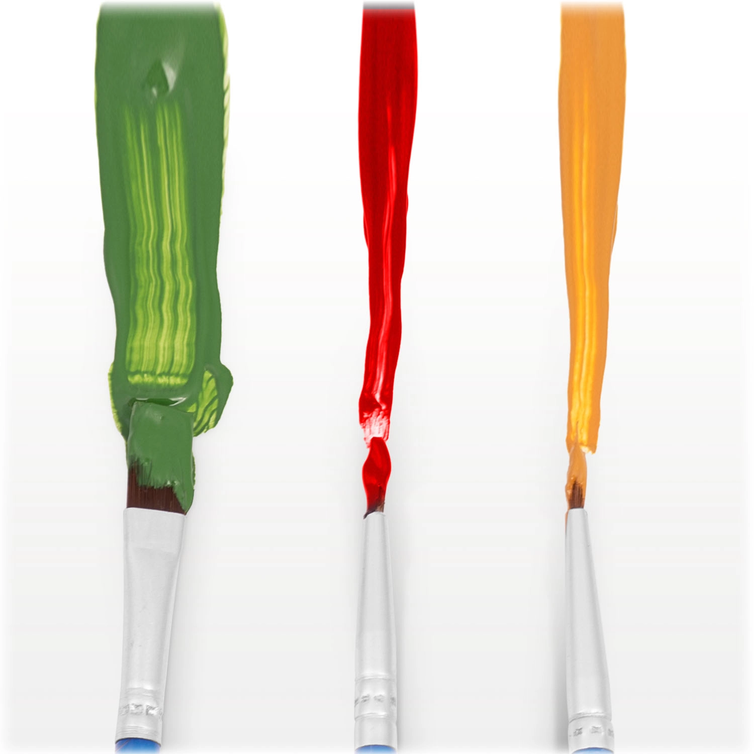 In de verpakking vind je 30 dekkende acrylverven en drie penselen (1 mm, 2 mm, 7 mm) voor grote vlakken en de fijnste details.