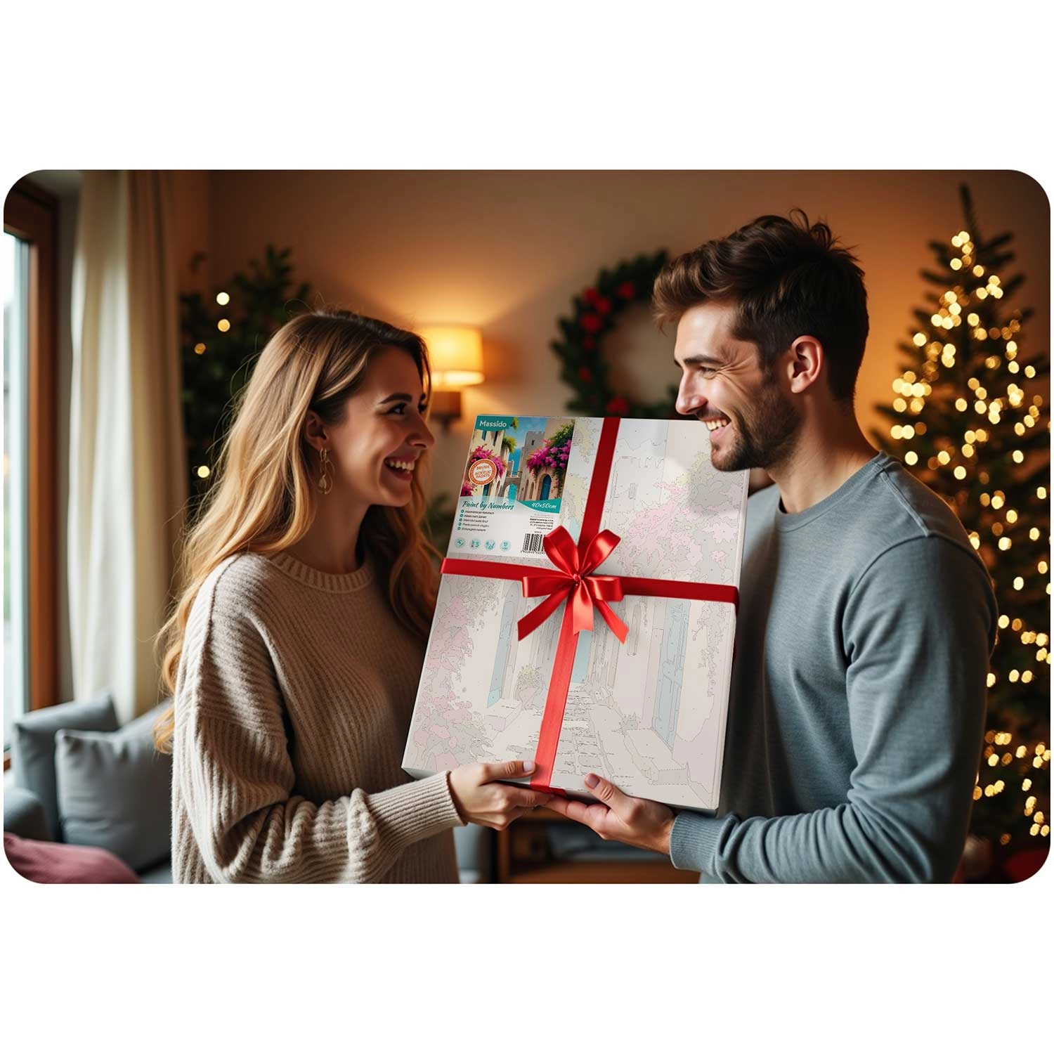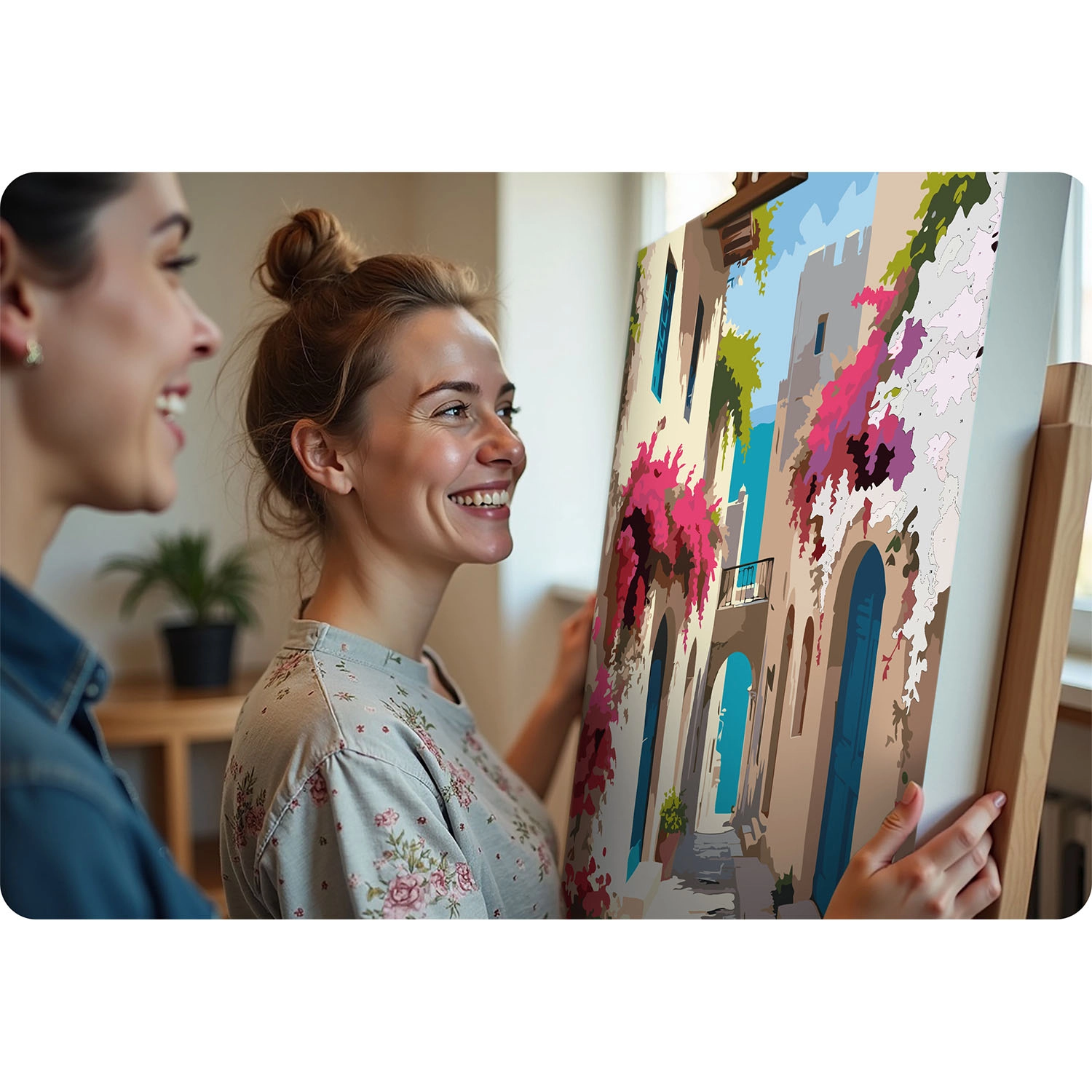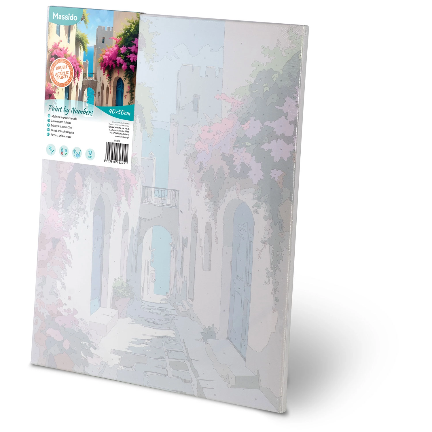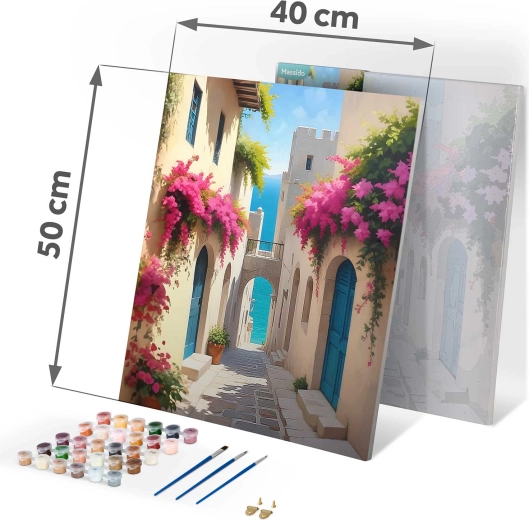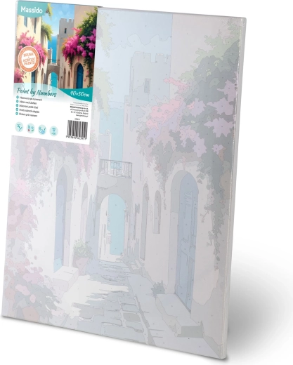 Het doek is opgespannen op een houten frame, met een subtiele onderschildering en genummerde vakken. Zo is schilderen intuïtief en netjes, zelfs voor absolute beginners.