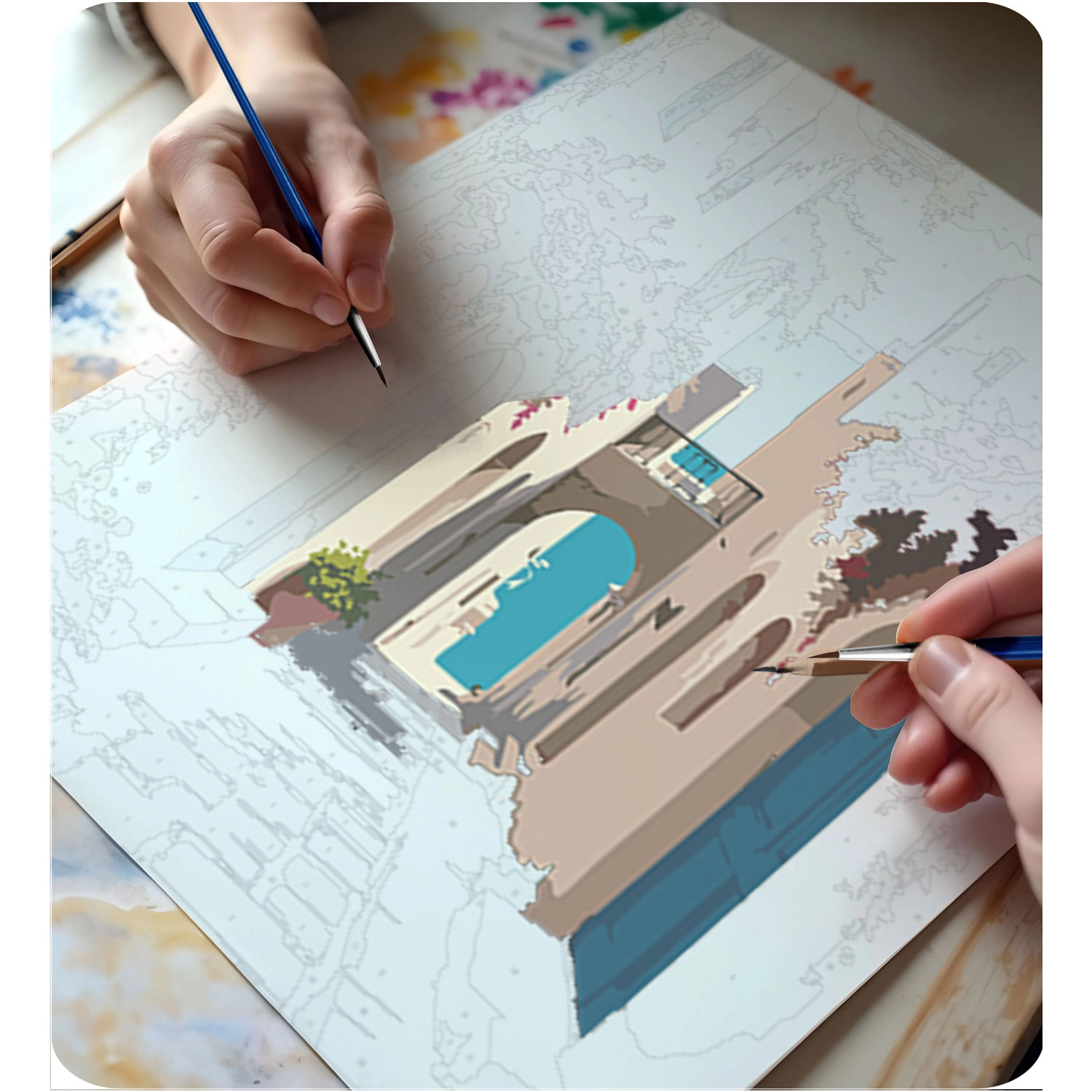 De set bevat drie hoogwaardige penselen in verschillende maten voor detailwerk en snel invullen van vlakken, evenals haakjes voor ophangen, zodat je het voltooide werk met trots kunt tentoonstellen. Schilderen op nummer is een geweldige ontspannende activiteit voor individuen en gezinnen en een uitstekend idee voor een origineel cadeau.