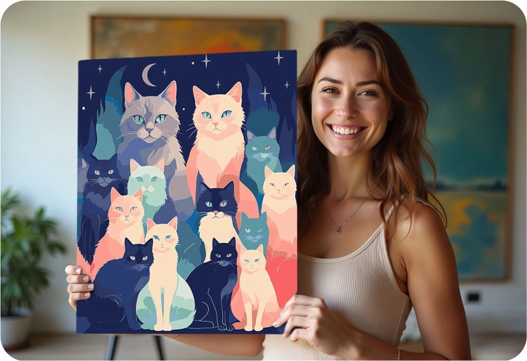- Geweldig cadeautip – de set of het voltooide schilderij maakt elke kattenliefhebber blij.