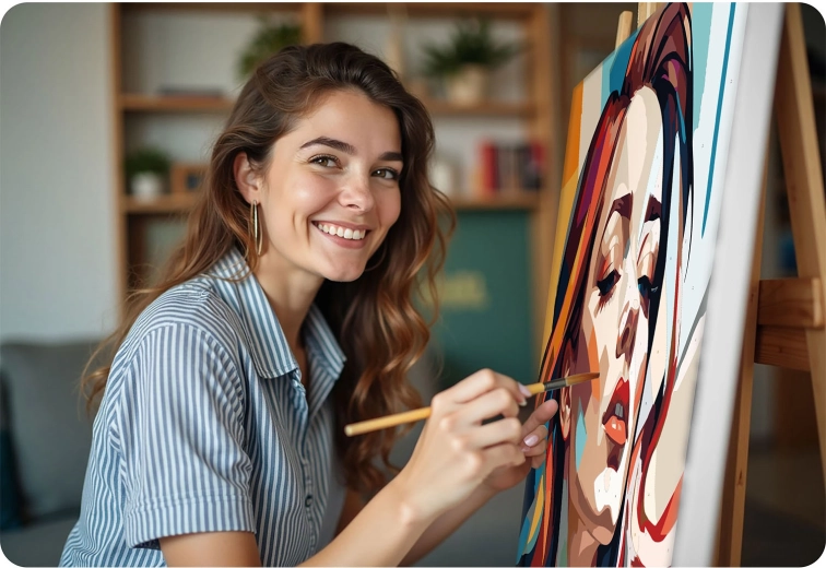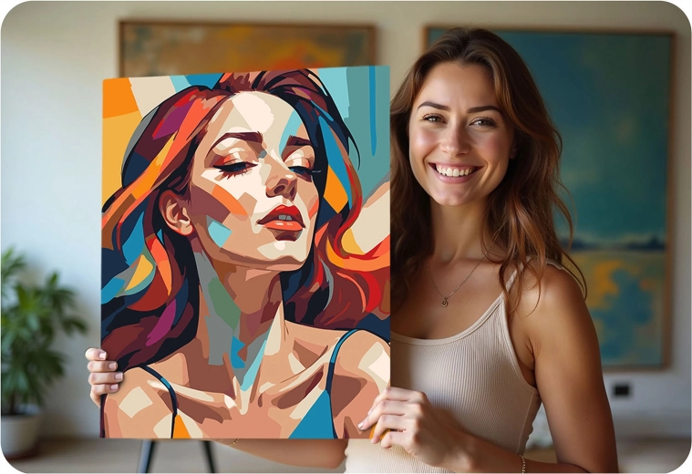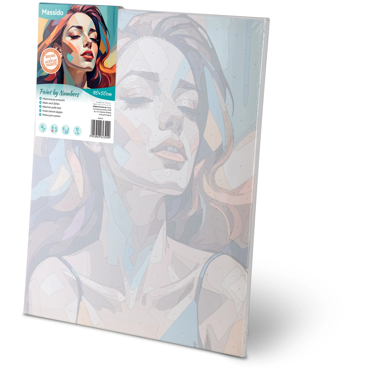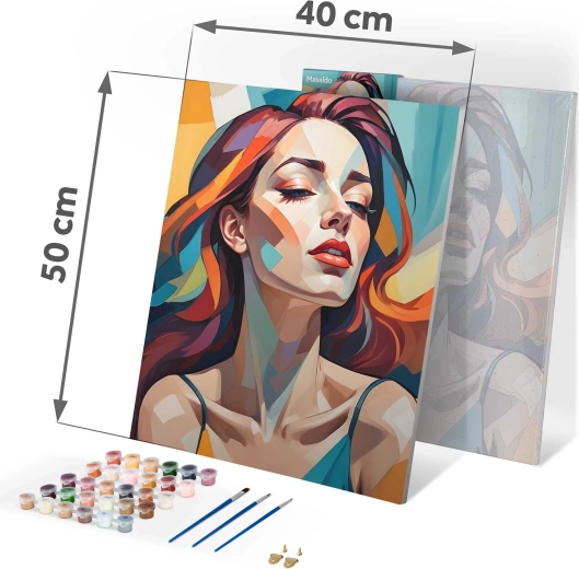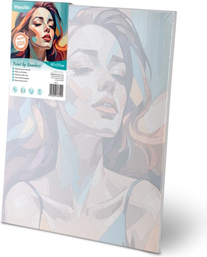 Laat je creativiteit stromen met de premium set van MASSIDO. Het kwaliteitsdoek, opgespannen op een houten frame en voorzien van voorgedrukte, genummerde vlakken, leidt je stap voor stap. Het enige wat je hoeft te doen is nummers aan kleuren koppelen en toekijken hoe er voor je ogen een levendig, modern portret van een vrouw ontstaat met krachtige kleuren en strakke lijnen.