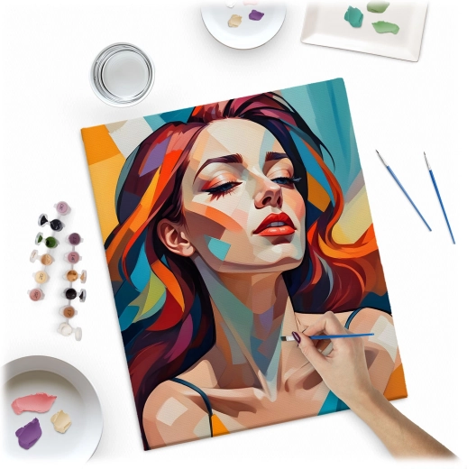 Ontdek het plezier van creëren met de creatieve set schilderen op nummer 40×50 cm – portret van een vrouw. De set bevat een voorgedrukt doek op frame, 30 dekkende acrylverven, 3 penselen in verschillende maten en haakjes om op te hangen. Dankzij de gekleurde onderschildering met een subtiel patroon is schilderen eenvoudig, zelfs voor beginners, en het resultaat heeft intense kleuren en volledige dekking.