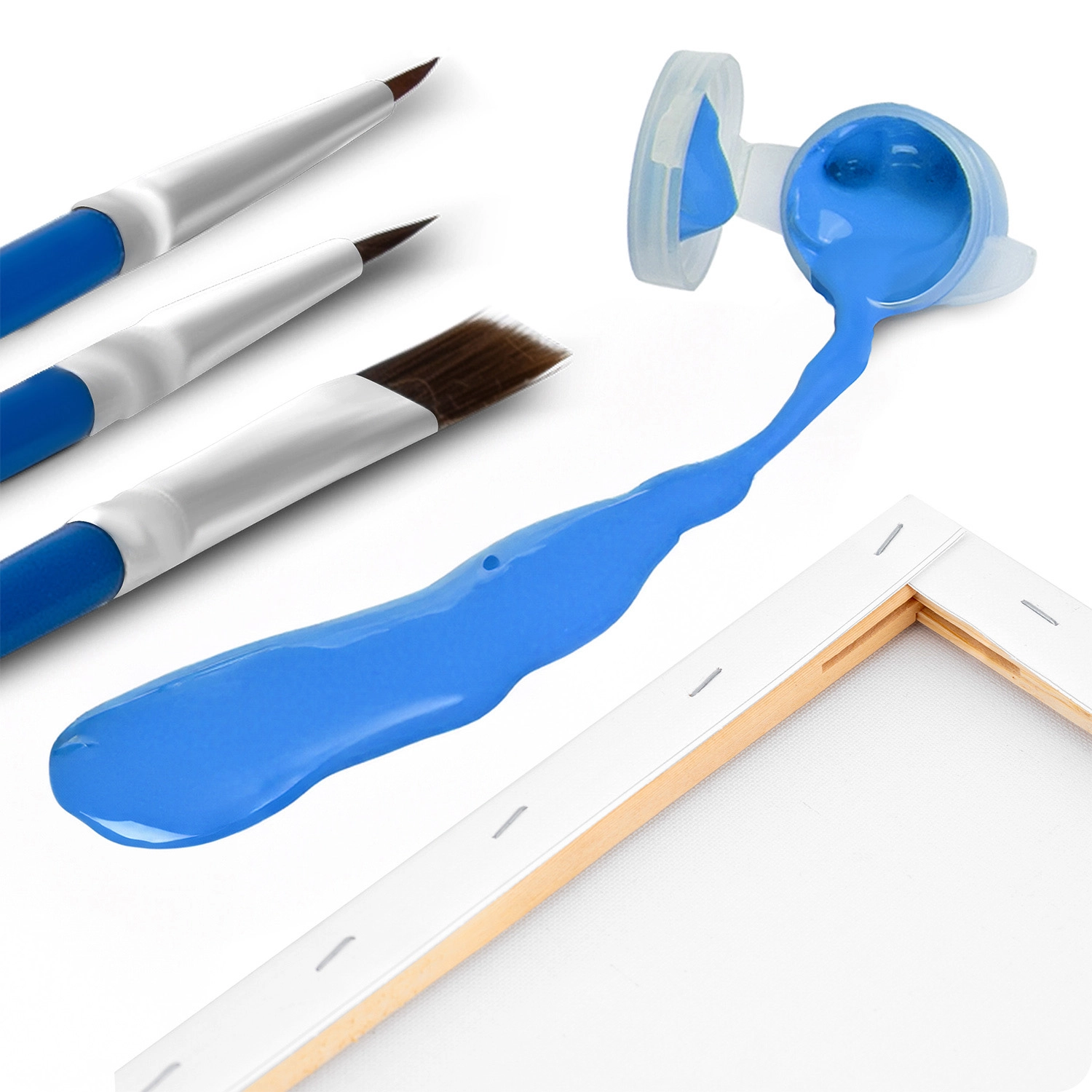 De set bevat 30 intense acrylverven met een prettige consistentie die niet verdund hoeven te worden, en 3 penselen voor nauwkeurig werk, van achtergrond tot de fijnste details. Volledige dekking bedekt lijnen en ondergrond betrouwbaar, waardoor het eindresultaat een professionele uitstraling heeft. Ook inbegrepen is een ophangset voor het snel tentoonstellen van het voltooide werk.