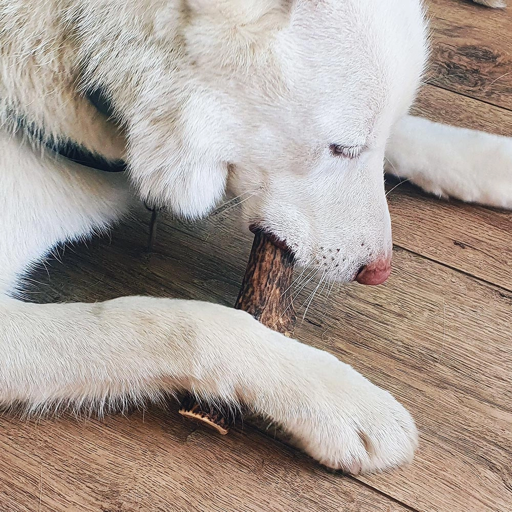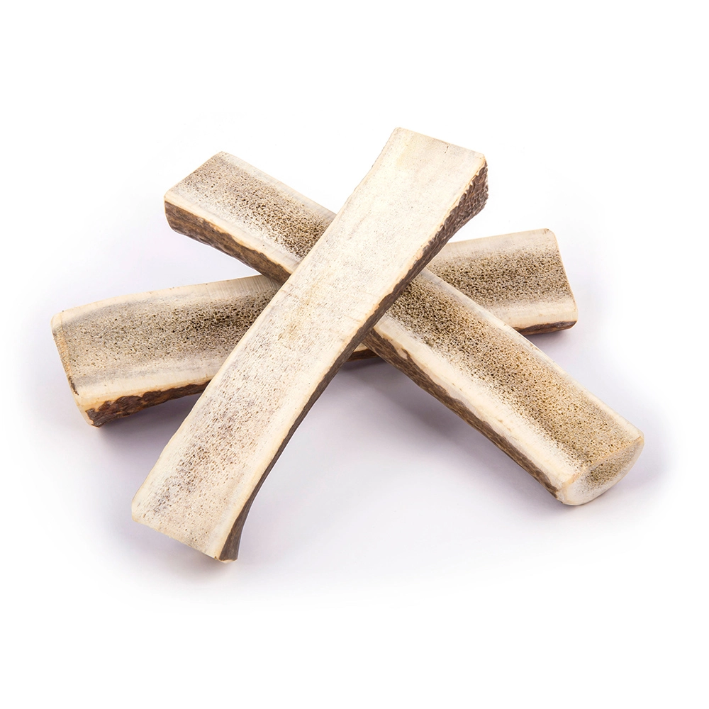 • Veiliger dan botten: het gewei slijt langzaam tijdens het kauwen en splintert minder.