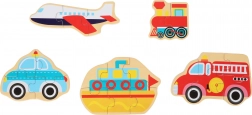 Houten puzzel - Voertuigen. Het Duitse bedrijf Legler richt zich sinds 1996 op de productie van kwalitatief hoogwaardige houten speelgoed. Al het houten speelgoed van het merk small foot heeft een CE-keurmerk en wordt geproduceerd volgens de Europese speelgoedveiligheidsnorm EN 71. De gebruikte verven zijn speciaal ontwikkeld voor houten speelgoed en zijn zelfs bestand tegen speeksel van kinderen. Het hout dat voor dit speelgoed wordt gebruikt, is meestal afkomstig van bosbouwbedrijven die deelnemen aan herbebossing. Dit biedt alle klanten de mogelijkheid bij te dragen aan het behoud van natuurlijk groeiende bossen. Het houten speelgoed van small foot zijn kleurrijke producten die grotendeels zijn gemaakt van natuurlijke grondstoffen – hout. Ze bezorgen kinderen al op jonge leeftijd plezier en ontwikkelen hun tast- en zintuiglijke vaardigheden. Het doel van het merk small foot is de mentale en fysieke ontwikkeling van kinderen te ondersteunen.